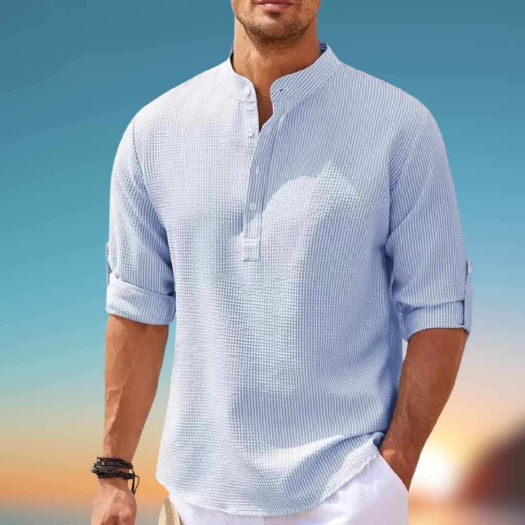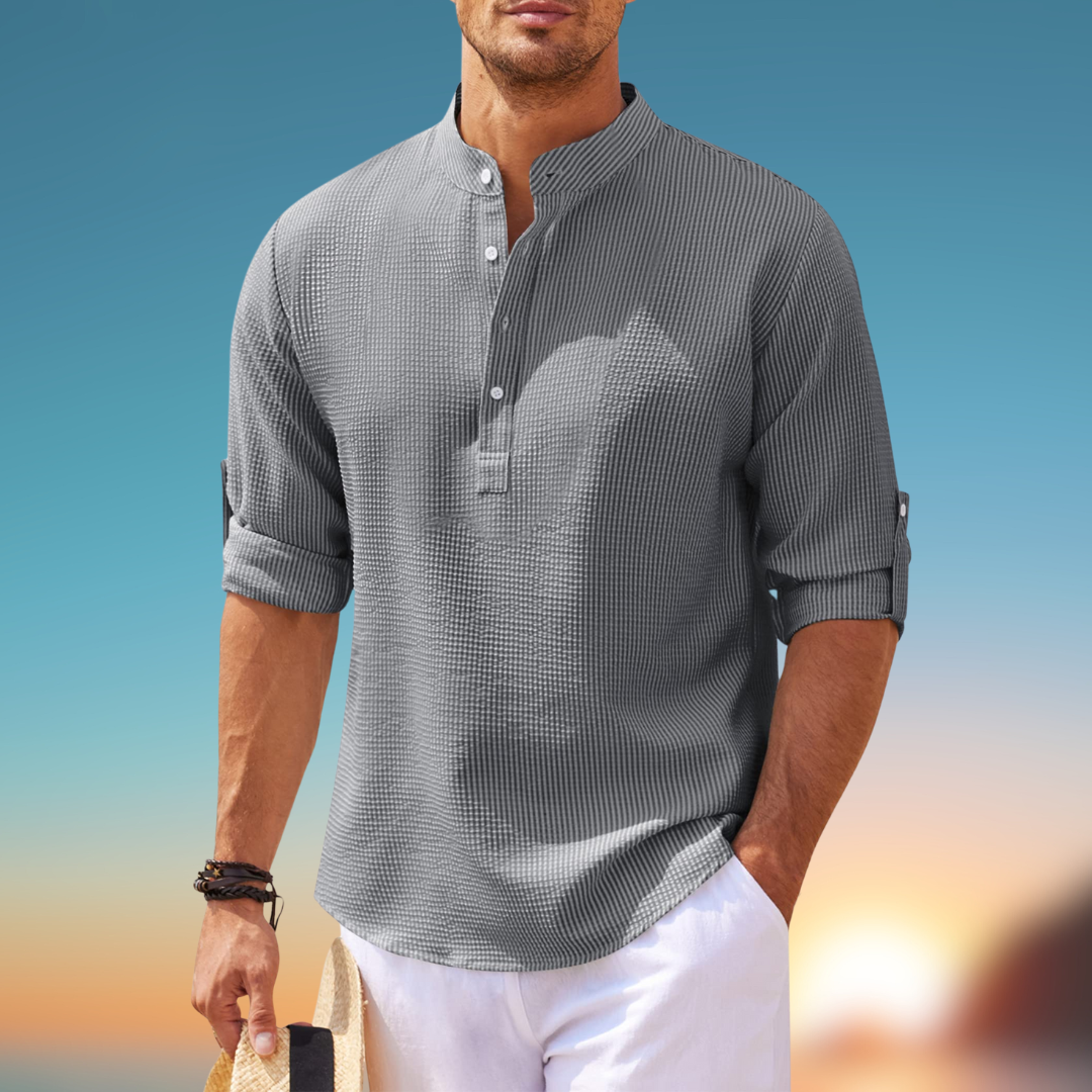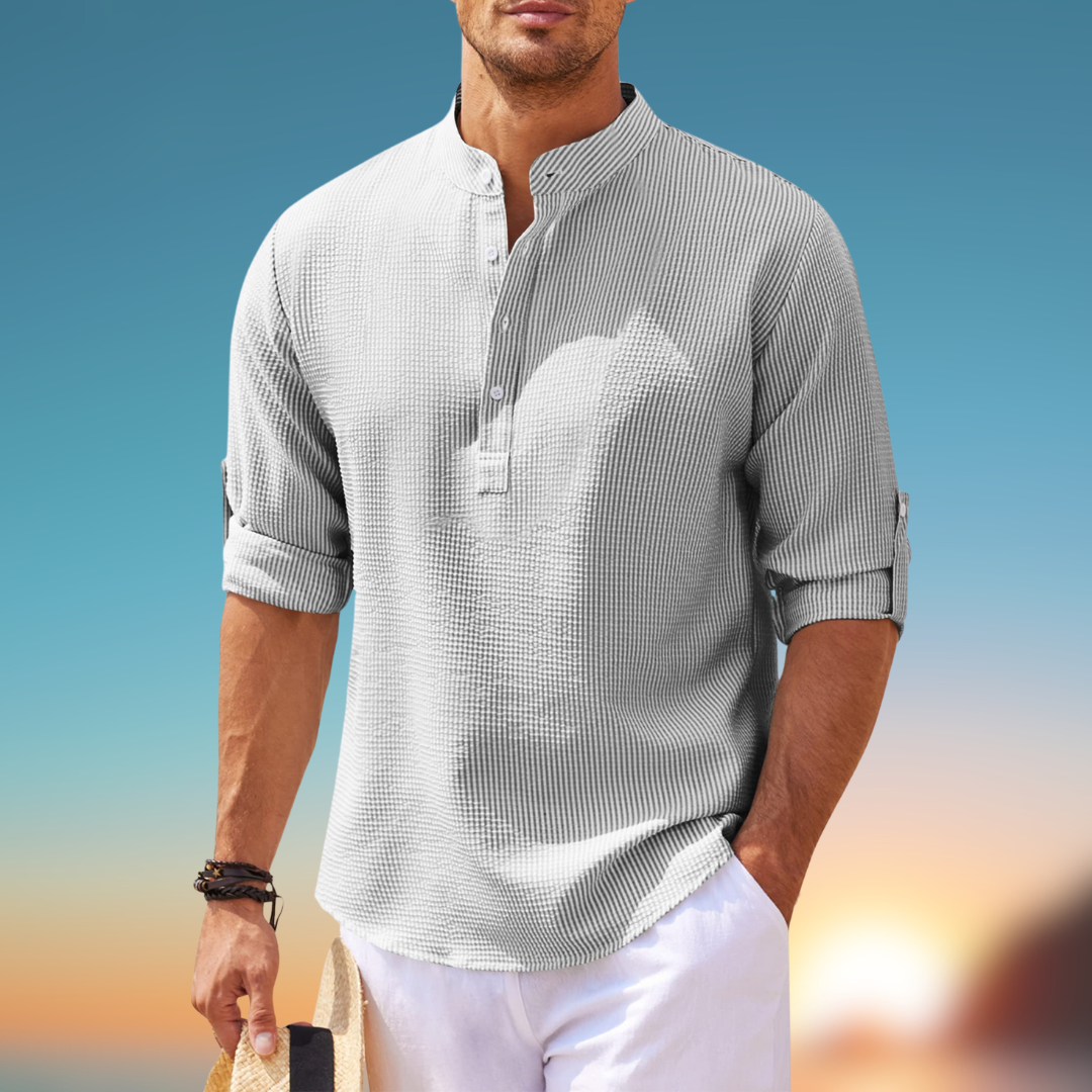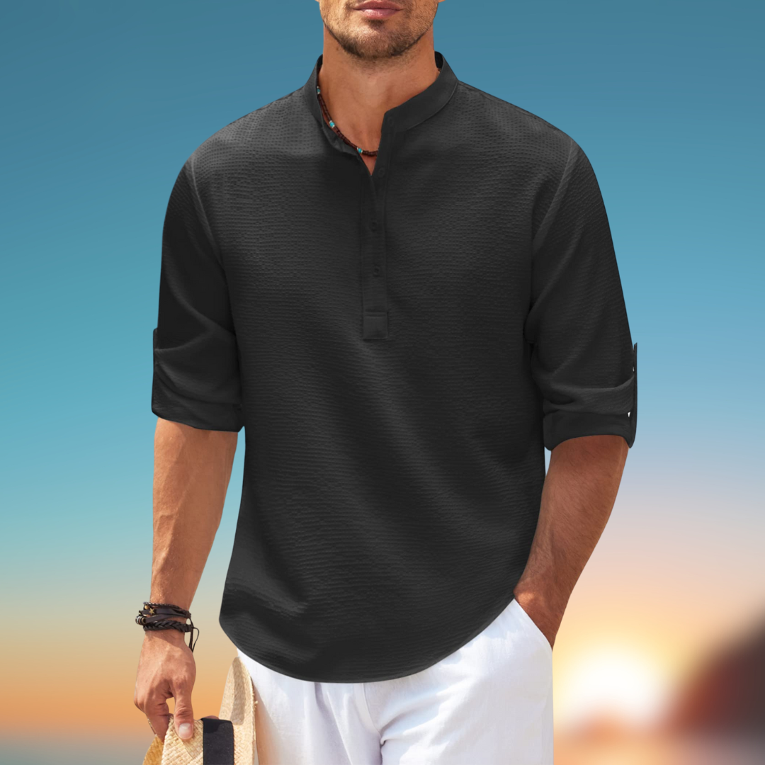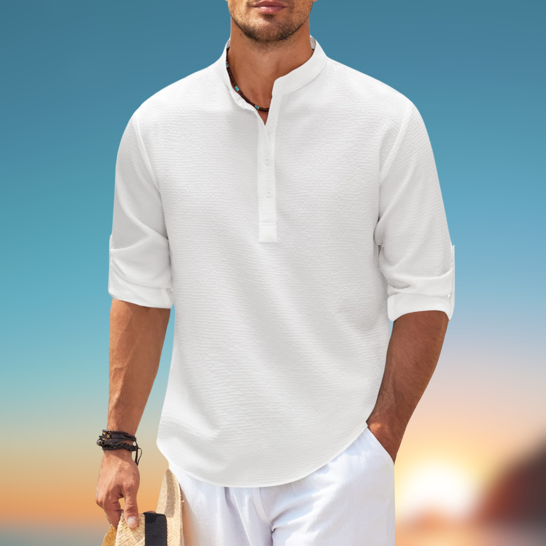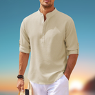 Mandarin Kraag Heren Tuniek | Linnenlook | Ademend & Casual Chic met Lange Mouwen