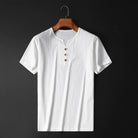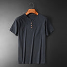 Dit korte mouwen T-shirt met henley-hals is perfect voor de man die houdt van minimalisme met een klein detail. De houten-look knopen geven het shirt een natuurlijke, warme uitstraling terwijl de zachte stof en comfortabele fit zorgen voor draagplezier de hele dag. Verkrijgbaar in neutrale tinten zoals zwart, beige, wit, lichtblauw en donkergrijs – een must-have in elke moderne garderobe.