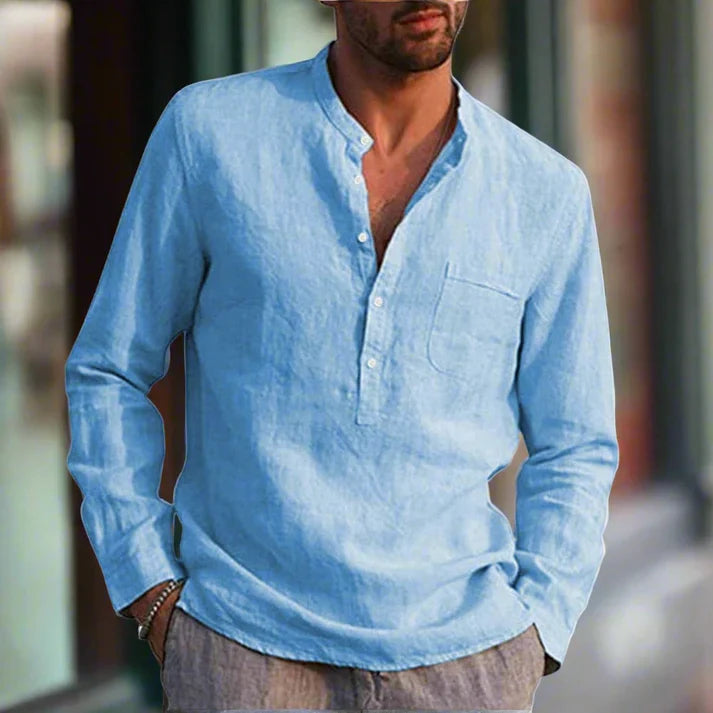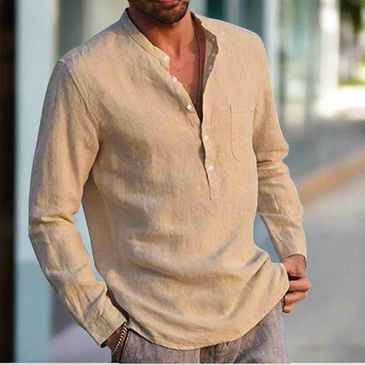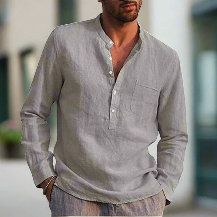 Het Napoli Shirt is de perfecte combinatie van comfort en verfijnde eenvoud. Gemaakt van lichtgewicht linnen straalt dit overhemd een nonchalante elegantie uit, ideaal voor warme dagen of een ontspannen avondlook. De relaxte pasvorm en subtiele details, zoals de opstaande kraag en knoopsluiting, geven het shirt een moderne, tijdloze uitstraling.