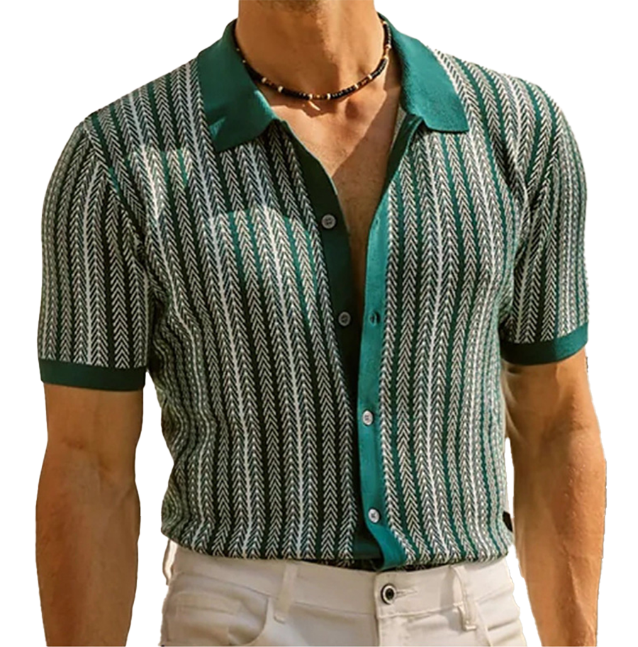 Dit korte mouwen overhemd is het toonbeeld van laid-back cool, met zijn verticale strepen in rijke tinten en retro-geïnspireerde kraag. De open kraag en luchtige pasvorm maken het perfect voor warme dagen, terwijl de gedetailleerde print en textuur zorgen voor een uitgesproken en trendy uitstraling. Verkrijgbaar in meerdere opvallende kleurvarianten zoals bruin, terracotta, marineblauw, petrol en groen – elk met een unieke twist die jouw outfit naar een hoger niveau tilt.