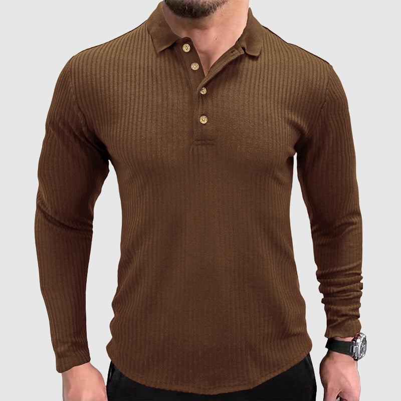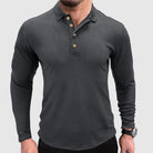 Deze longsleeve polo is gemaakt voor de man die houdt van comfort met klasse. De geribde structuur geeft het shirt een moderne, tactiele uitstraling, terwijl de contrasterende knoopsluiting zorgt voor een subtiele, stijlvolle touch. De stretchy stof vormt zich mooi naar het lichaam voor een slanke fit zonder in te leveren op bewegingsvrijheid. Verkrijgbaar in stijlvolle kleuren als zwart, wit, bruin en donkergrijs – ideaal voor zowel casual als semi-formele gelegenheden.