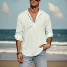 Het Riviera Linen Shirt is de perfecte keuze voor warme dagen en ontspannen momenten. Gemaakt van licht en ademend linnen biedt dit overhemd ultiem draagcomfort en een stijlvolle nonchalante uitstraling. Het minimalistische design met open V-hals maakt het veelzijdig – ideaal voor stranddagen, city trips of casual diners. Verkrijgbaar in meerdere frisse zomerkleuren.