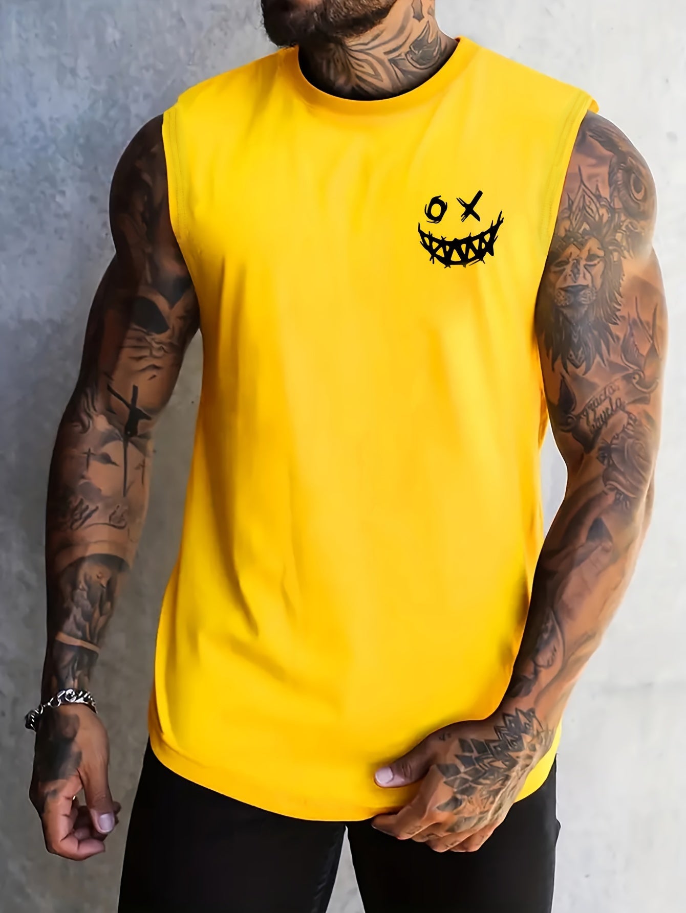 Deze mouwloze sporttop met borstprint is ideaal voor workouts, hardlopen of casual wear. De ruime armsgaten en het ademende materiaal zorgen voor maximale ventilatie en bewegingsvrijheid, terwijl de stoere print op de borst een sportieve finishing touch geeft.