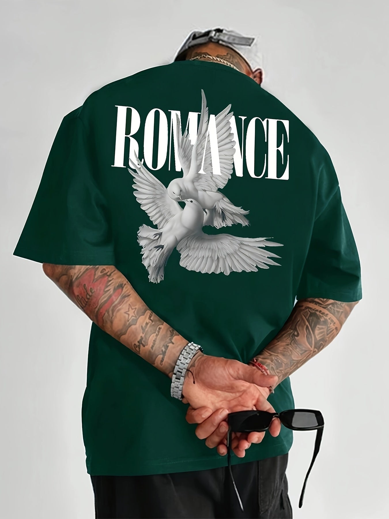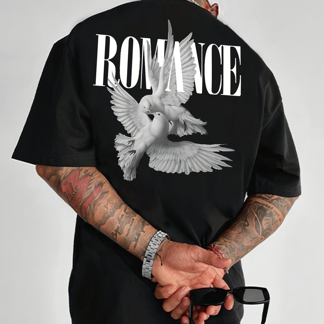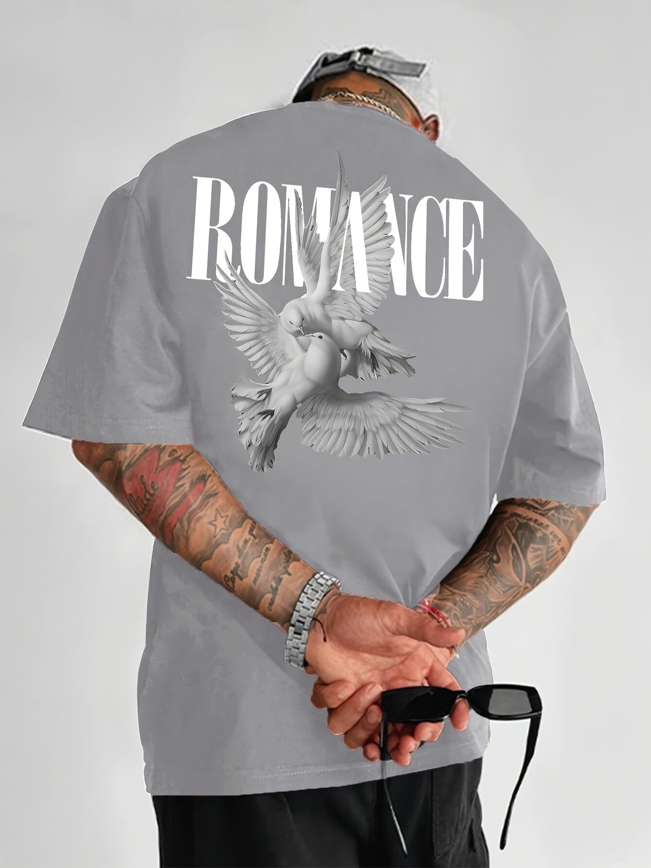 Dit oversized T-shirt met ‘ROMANCE’ print en duivenillustratie op de rug is een echte eyecatcher. De relaxte pasvorm en het zachte katoen zorgen voor ultiem comfort, terwijl het grafische ontwerp jouw outfit net dat beetje extra geeft. Perfect voor wie houdt van een edgy, artistieke stijl.