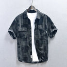 Washed Denim-Effect Overhemd | Short Sleeve Streetwear | Textured Patch Look