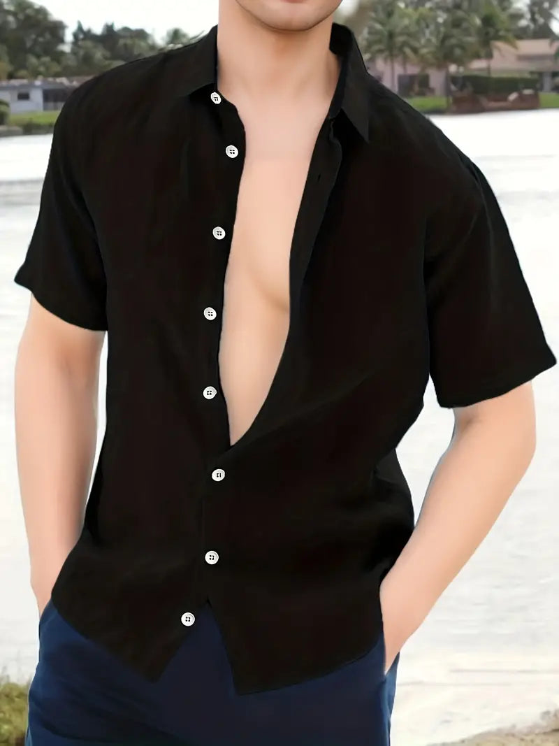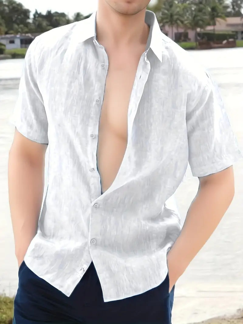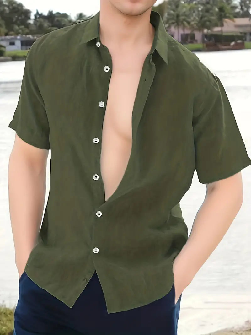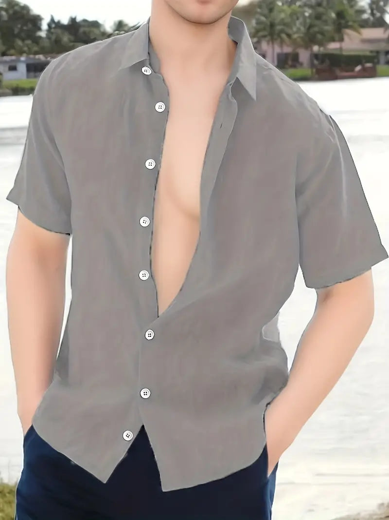 Capri Shirt | Heren Tuniek Overhemd | Linnenlook & Halve Knoopsluiting