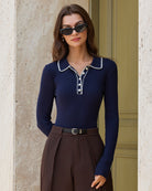 Navy Contrast Polo Knit | Geribde Pasvorm | Sportief & Chic