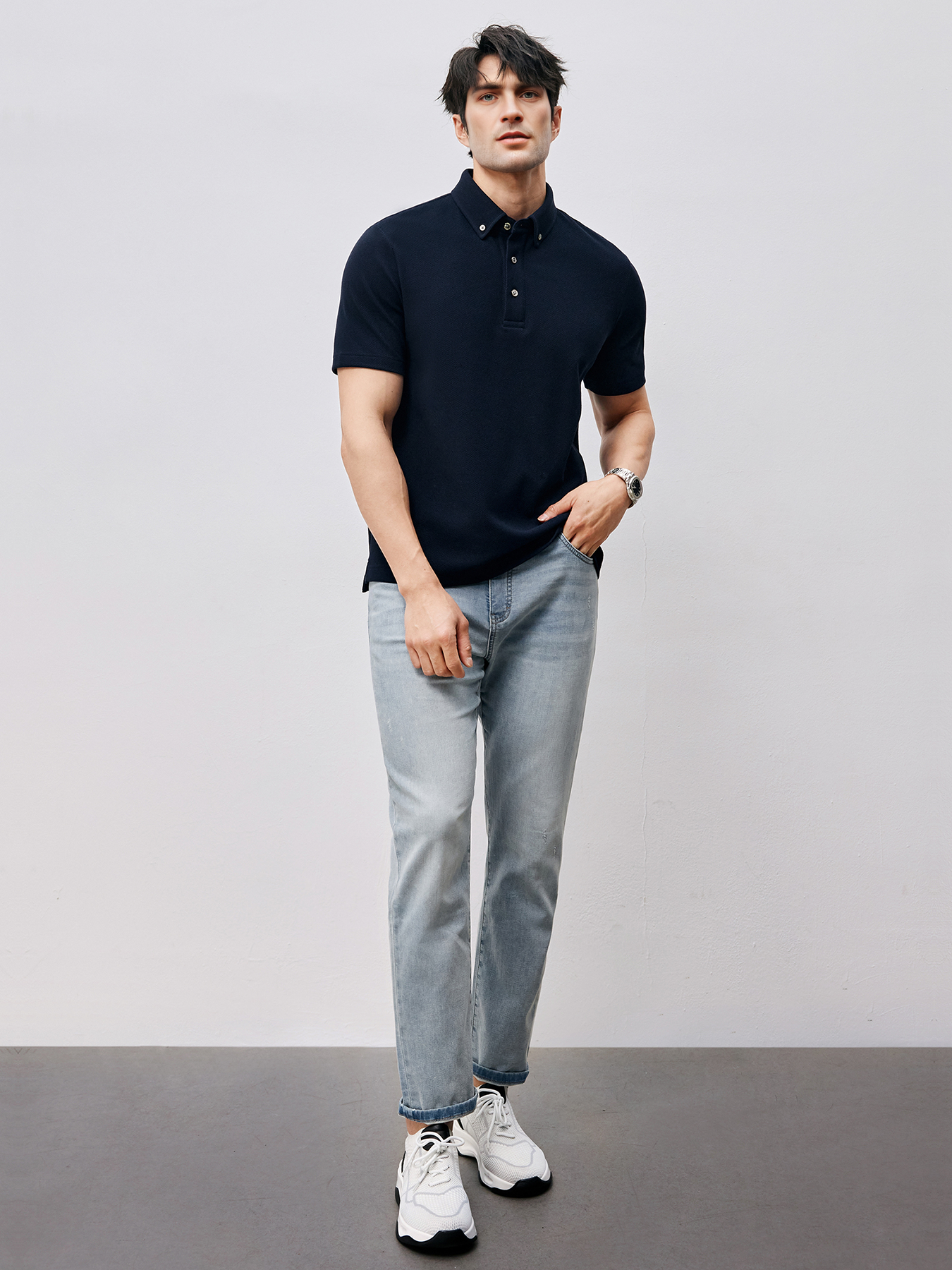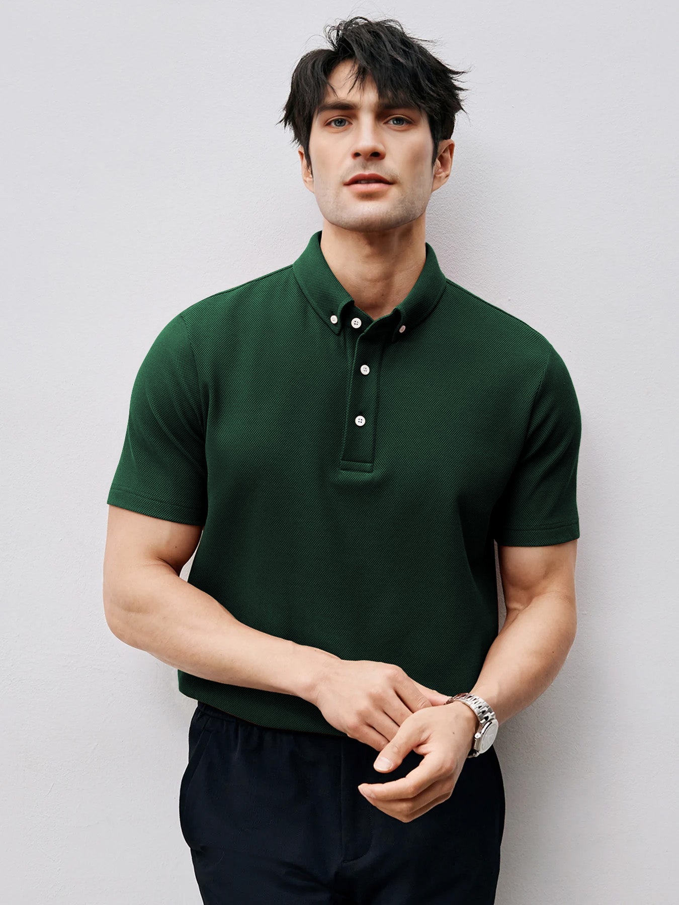 Combineer de Premium Knit Polo met een chino of pantalon voor een elegante smart casual look. Draag hem onder een blazer voor formele gelegenheden of met sneakers voor een relaxte weekendstijl. Een veelzijdige must-have voor elke moderne man.