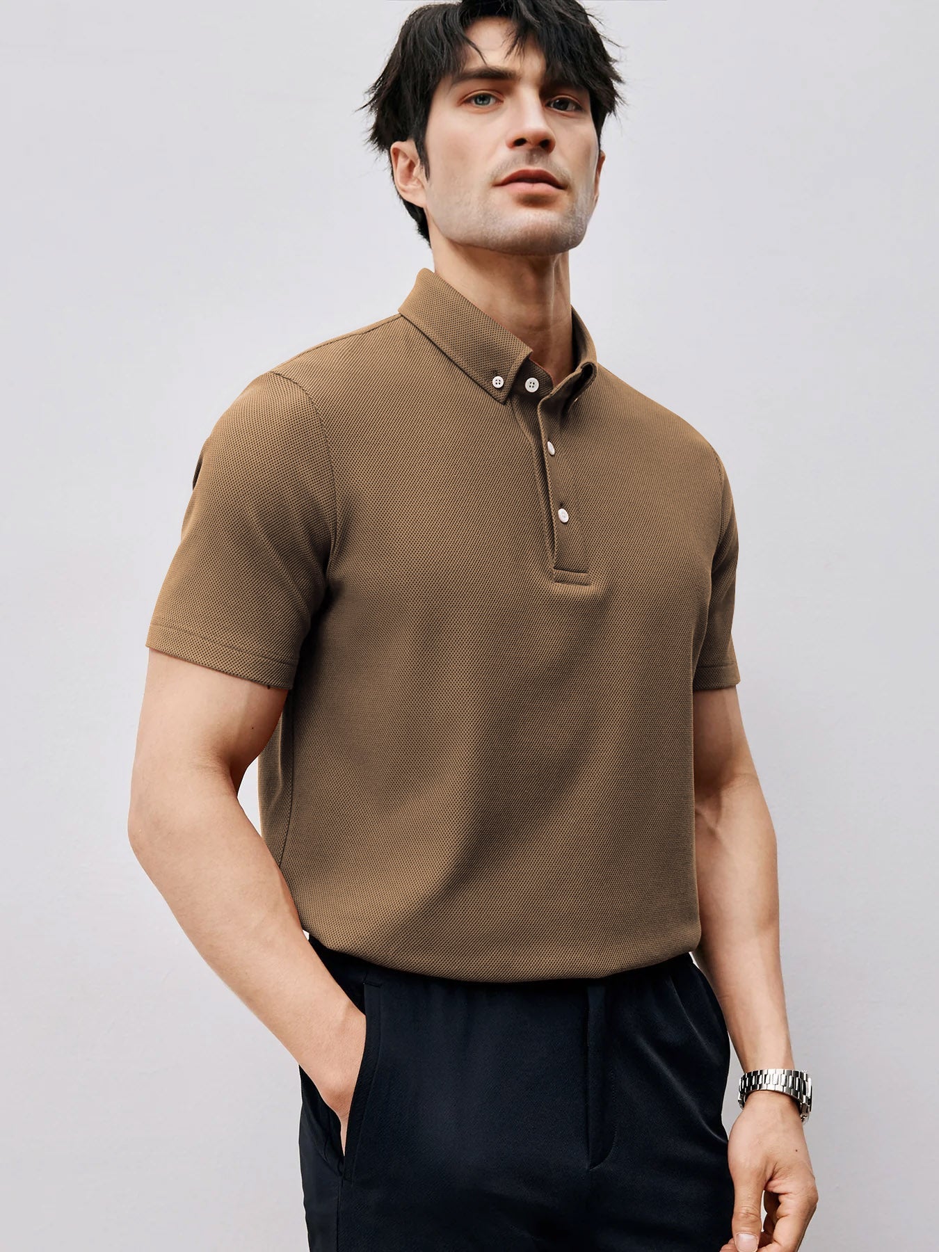 De Premium Knit Polo is een stijlvolle essential die comfort en verfijning naadloos combineert. Gemaakt van een ademende, gestructureerde knit-stof met een subtiele stretch, biedt deze polo een moderne pasvorm en luxe uitstraling. De kraag met knoopsluiting en het minimalistische ontwerp maken dit het perfecte kledingstuk voor zowel casual als geklede momenten.