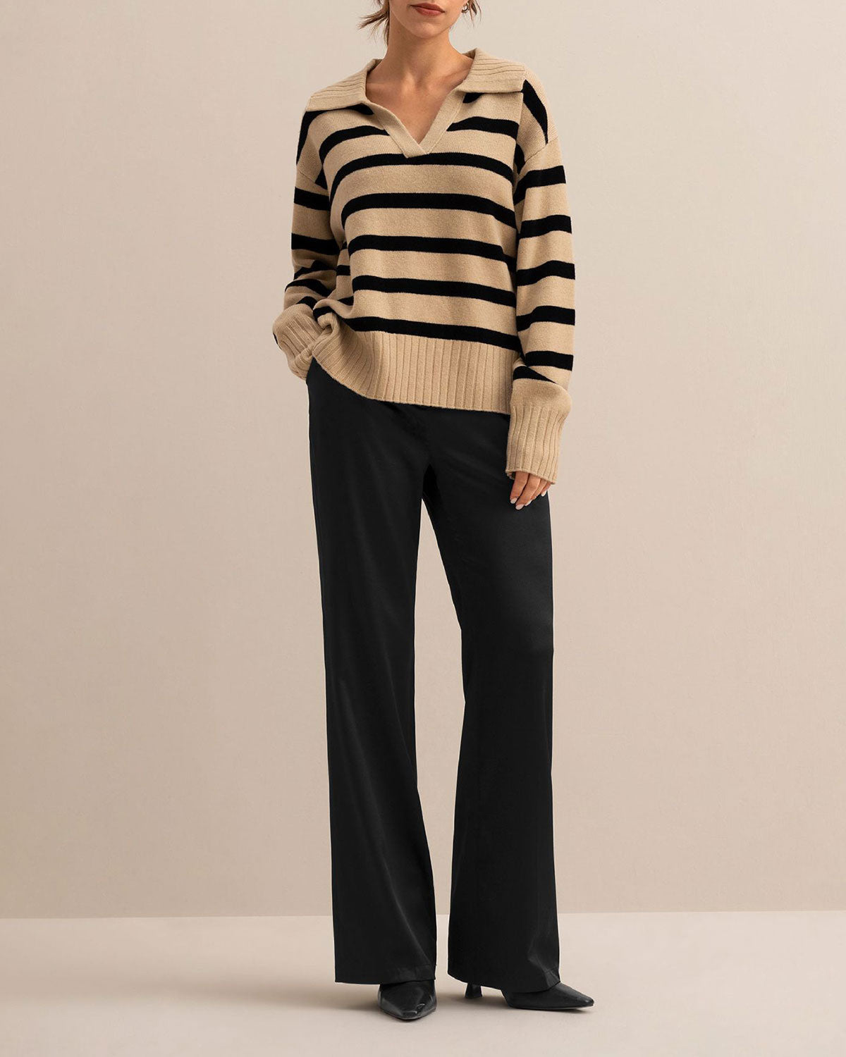 Striped Knit Polo | Zand & Zwart | Relaxed Chic