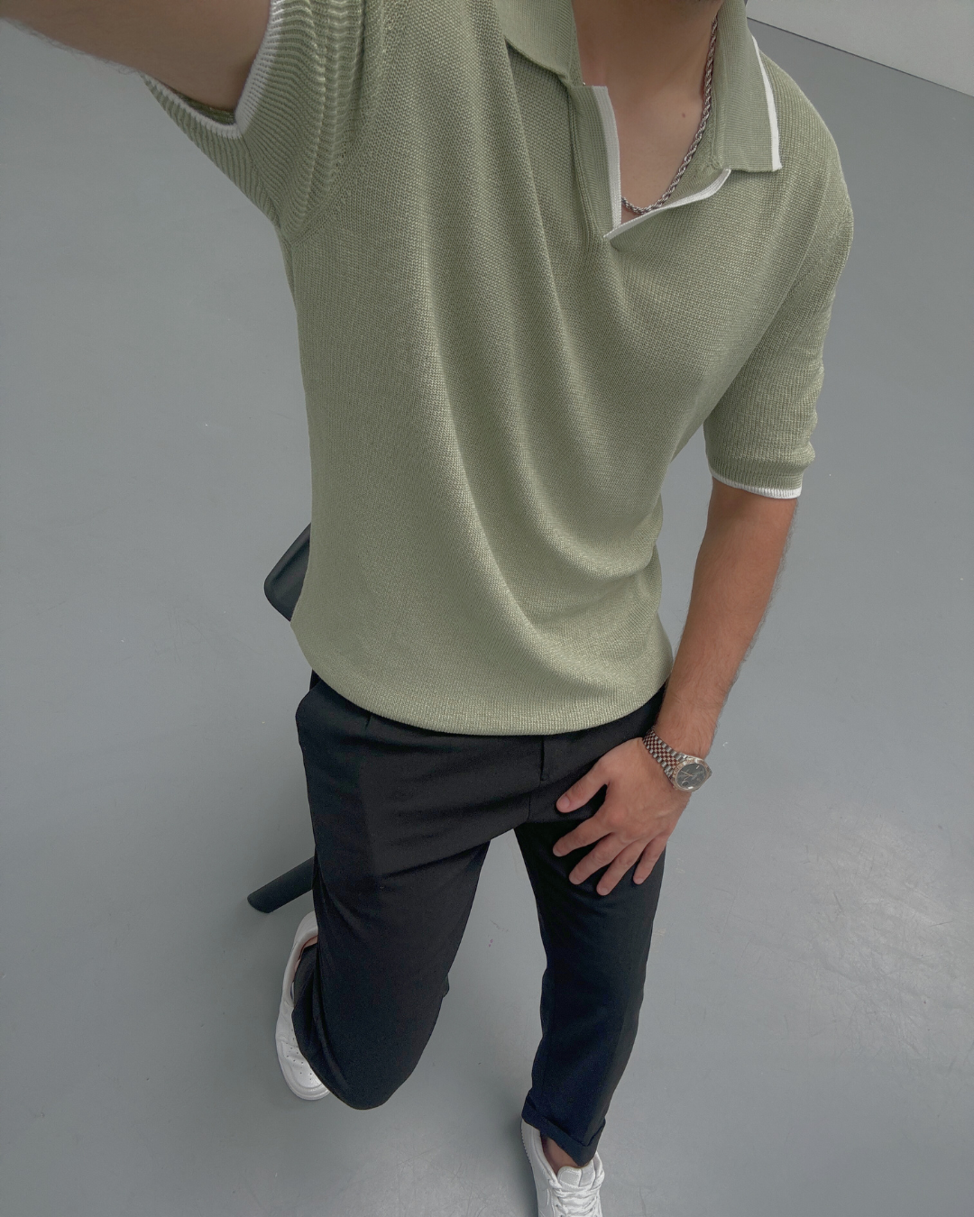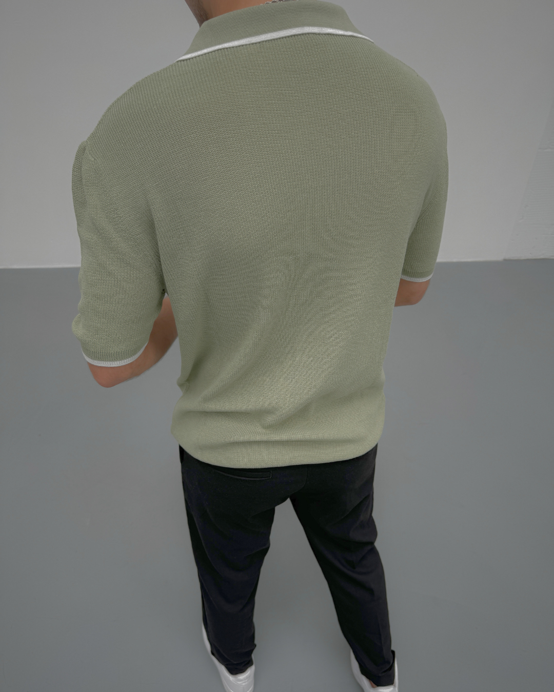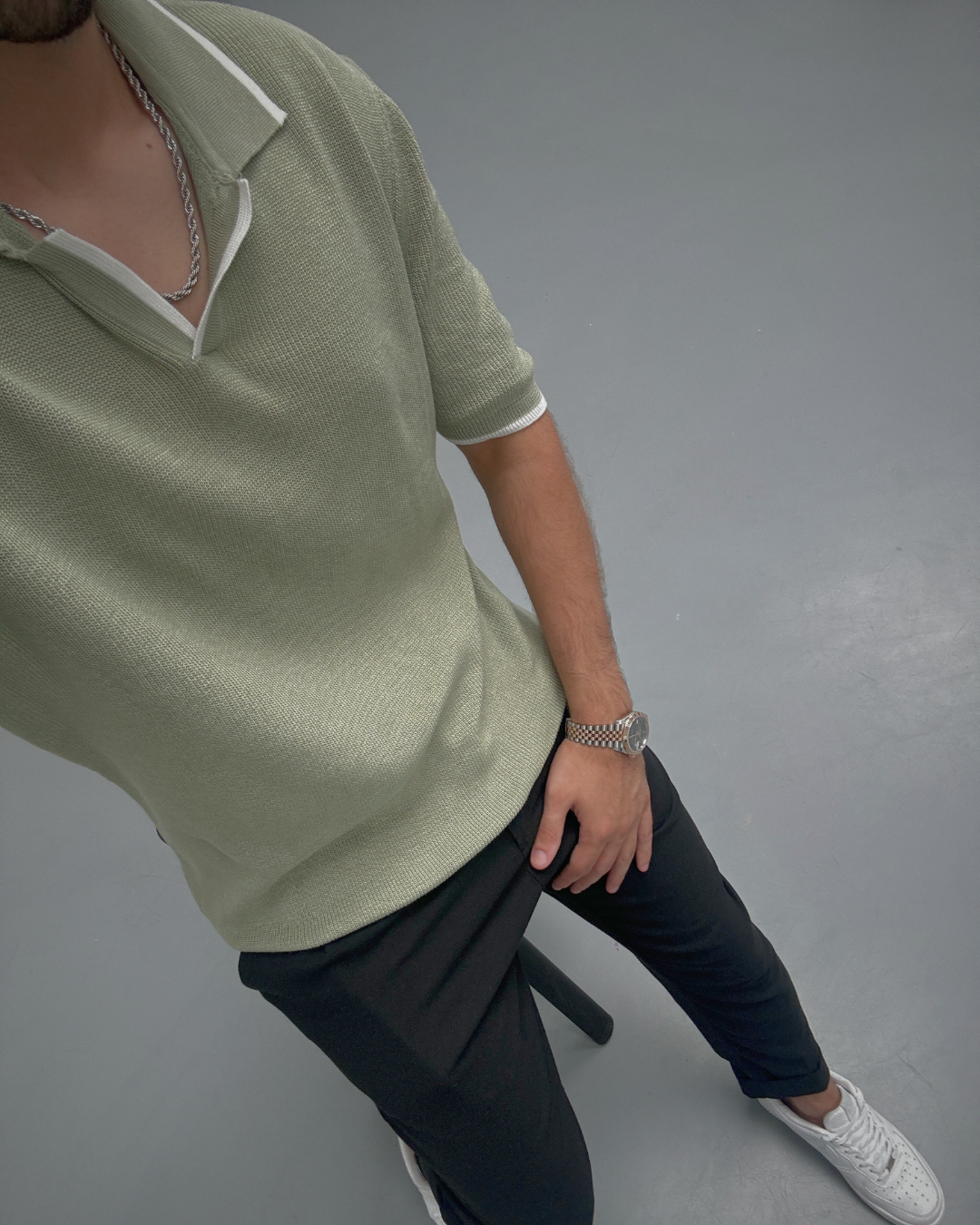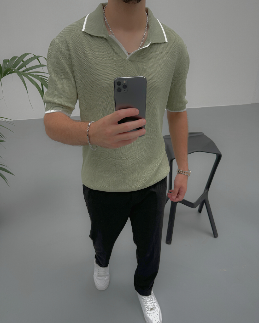 Milo Knit Polo | Zachtgroen & Contrasterende Kraag | Casual Modern