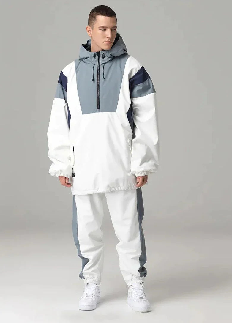 Met zijn iconische colorblock-design, oversized fit en technische uitstraling is deze windbreaker set een throwback naar de jaren 90 met een futuristische twist. De jas heeft een hoge kraag, capuchon en elastische boorden, terwijl de bijpassende broek comfortabel zit met een relaxte tapered fit. Gemaakt van lichtgewicht, winddichte stof, is deze set zowel functioneel als modieus — ideaal voor sport, casual streetwear of gecoördineerde festivallooks. Verkrijgbaar in wit met grijs/blauw en navy met rood details.