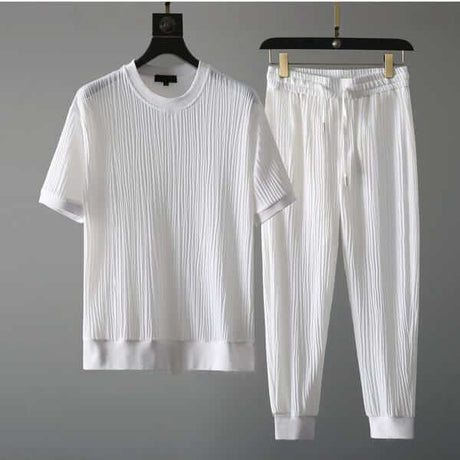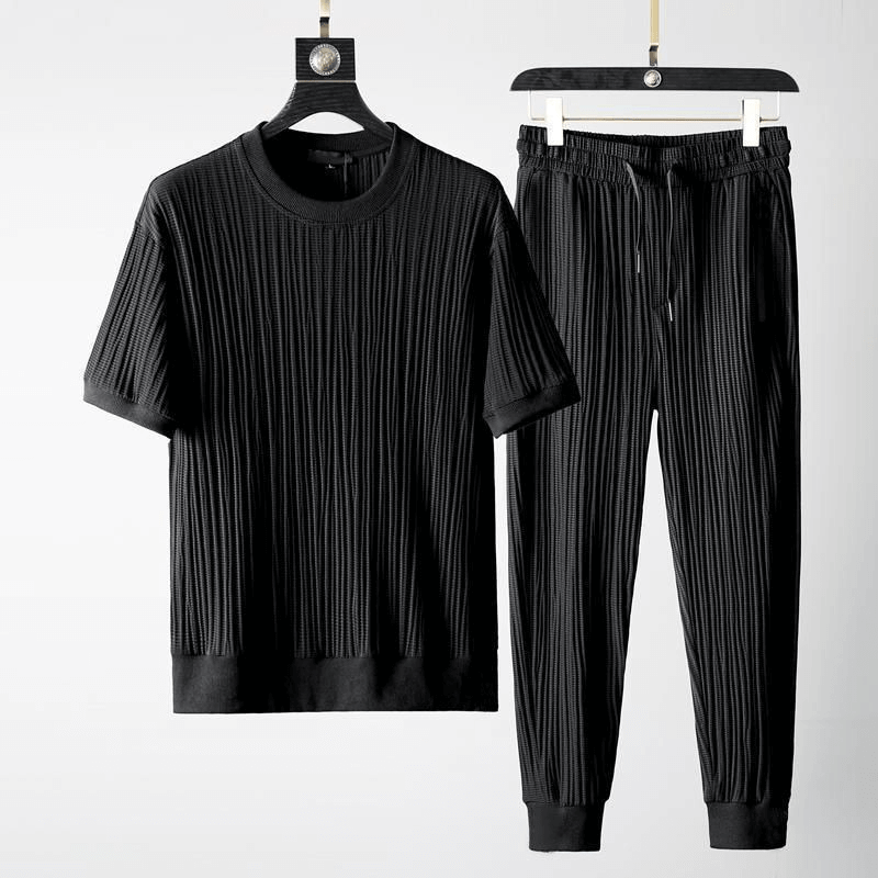 Gebreide Lounge Set Heren | Geribde T-Shirt & Jogger | Minimalistische Matching Style