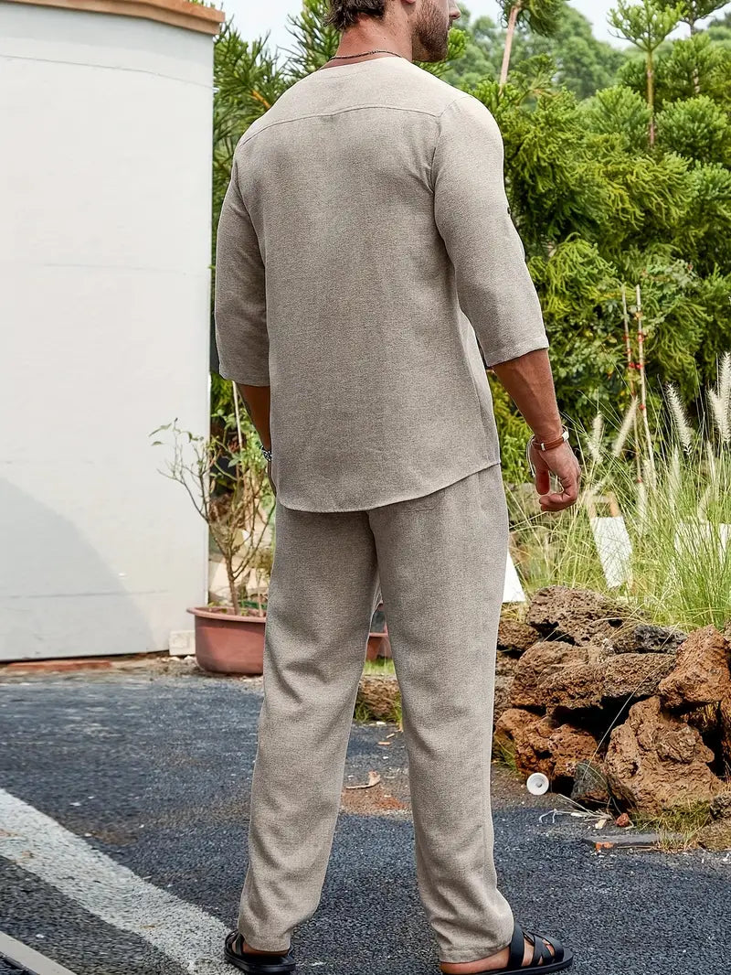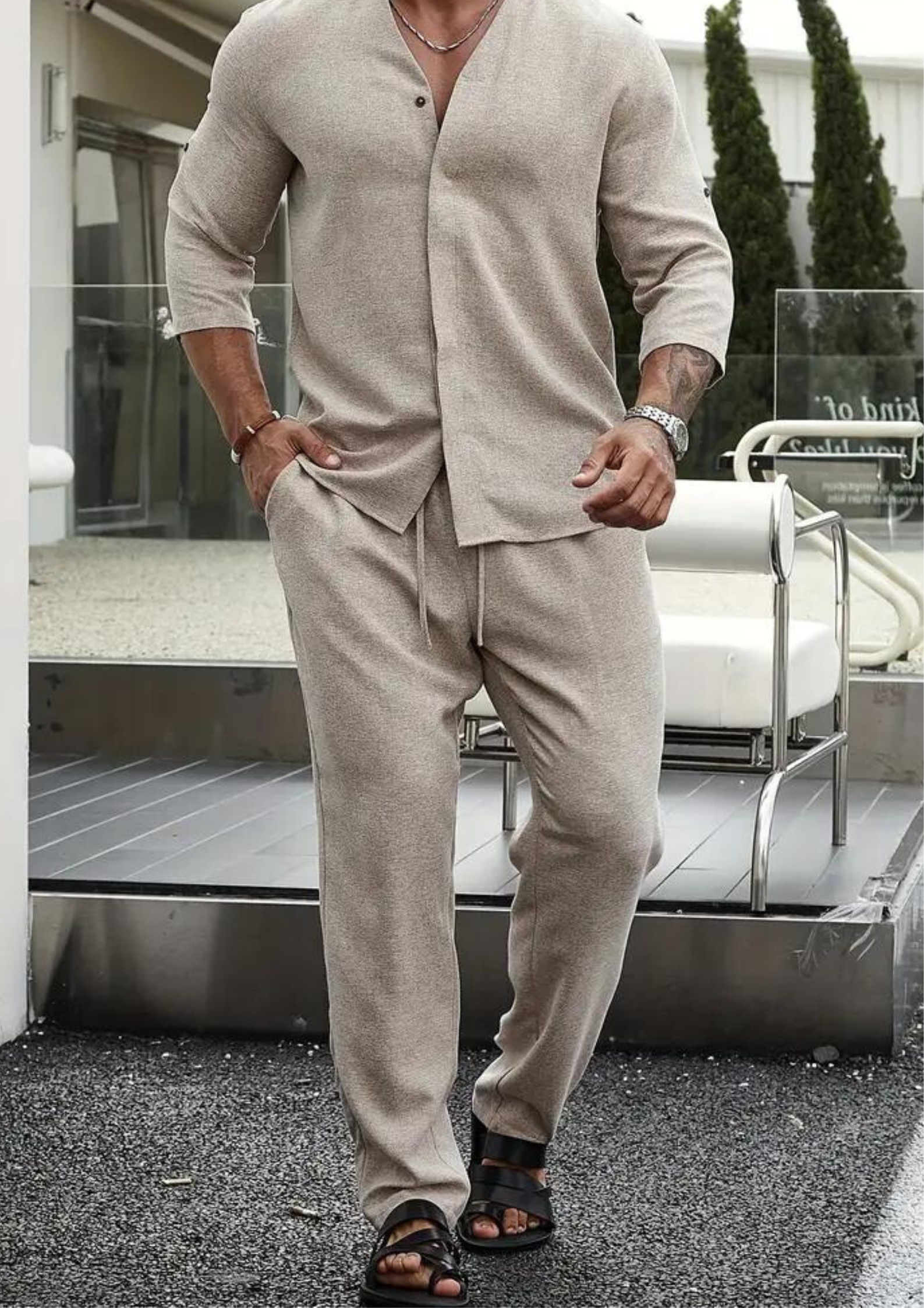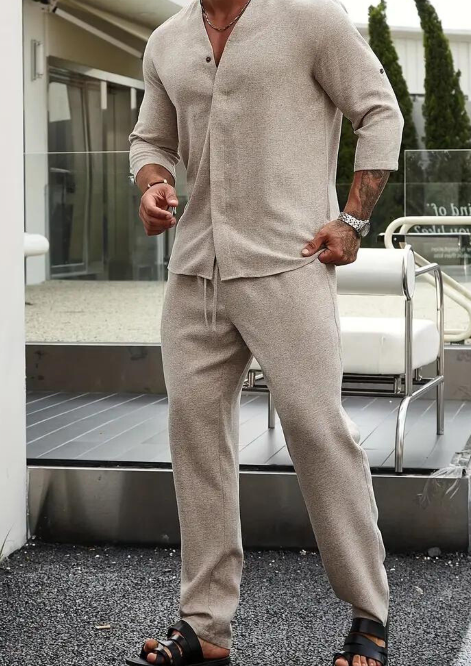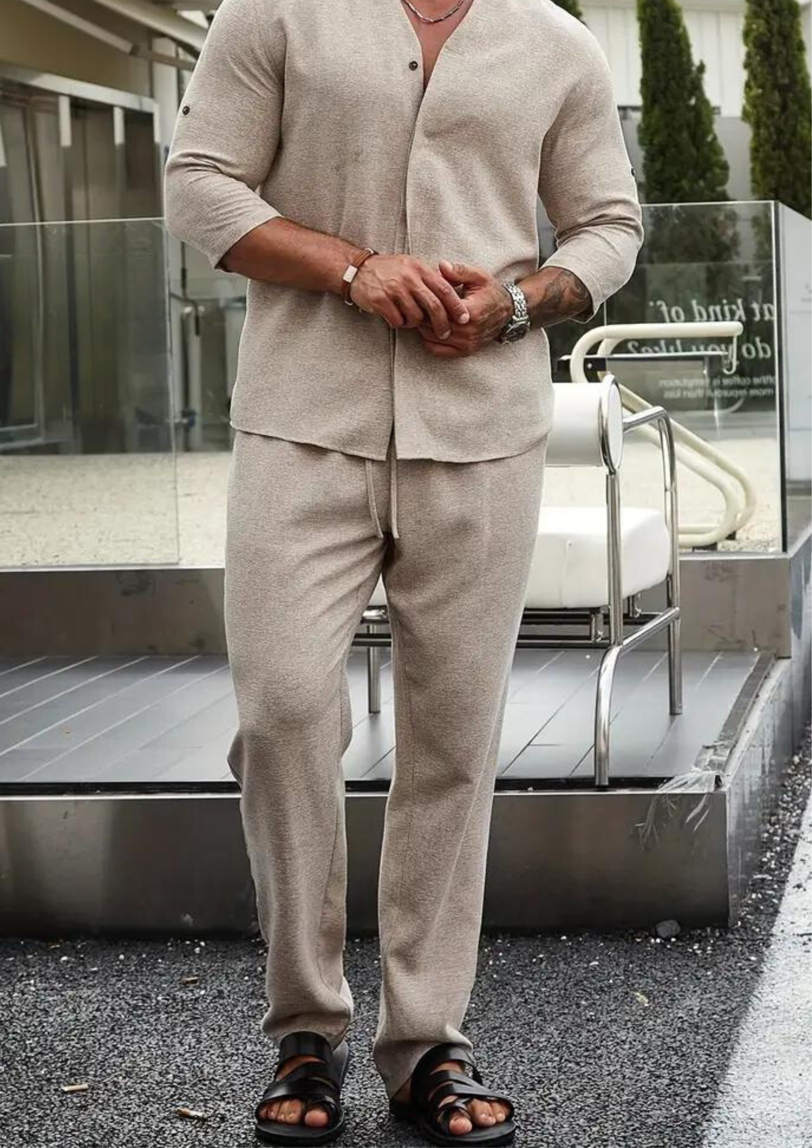 Heren Co-ord Set in Linnenlook | Knoopsluiting & Lange Broek | Resort Chic