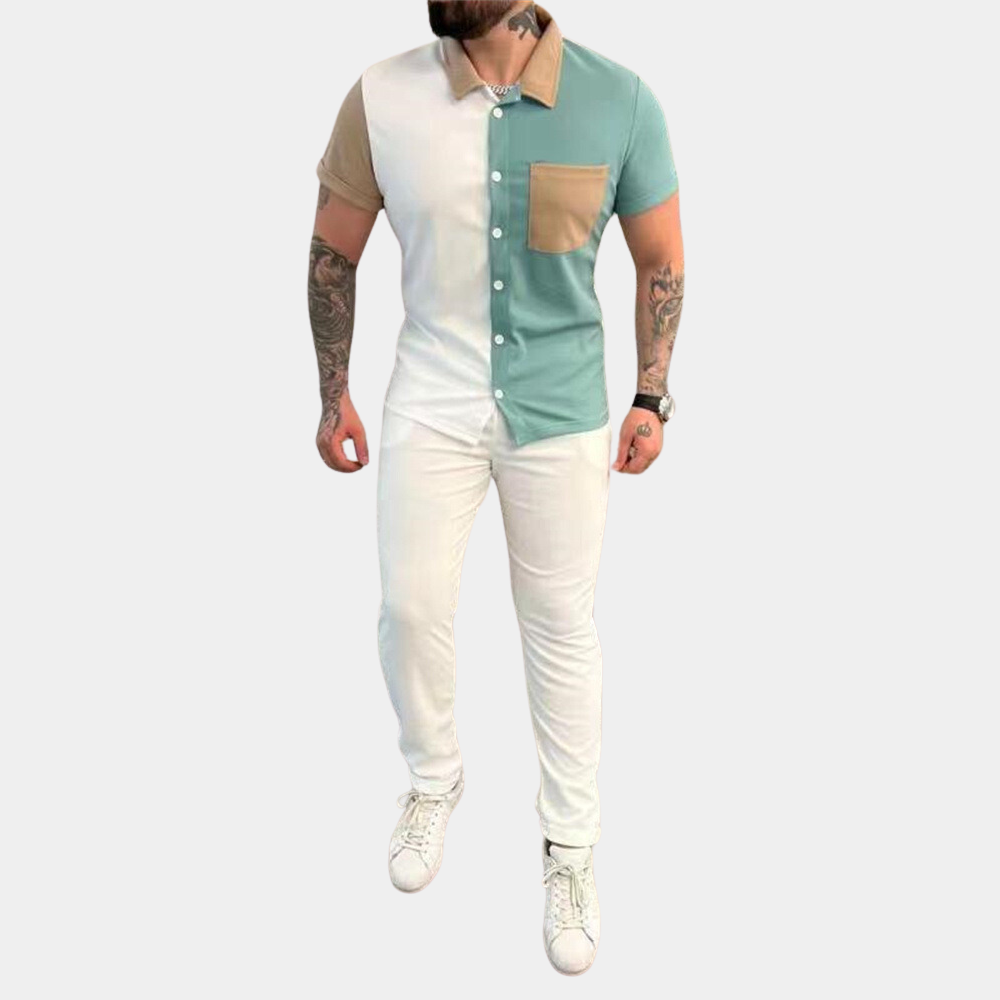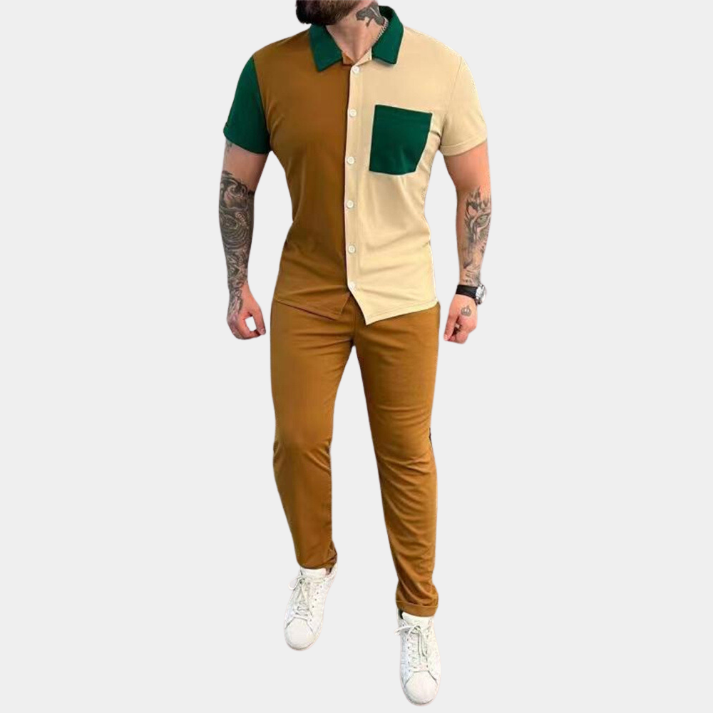 Heren Co-ord Set met Polo & Broek | Blokkleuren Design | Slim Fit Zomerstijl