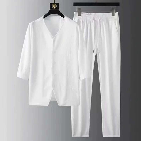 Heren Set met V-Hals Tuniek & Tapered Broek | Lichtgewicht & Luxe Loungewear