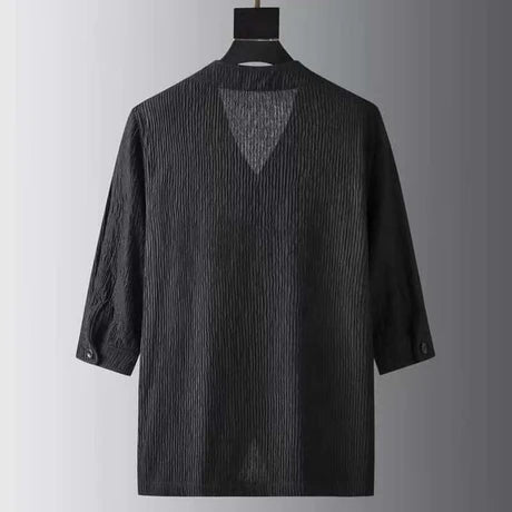 De set bestaat uit een tuniekachtige top met V-hals en driekwartsmouwen, gecombineerd met een comfortabele tapered broek. De luchtige stof met subtiele textuur biedt een luxe uitstraling en voelt aangenaam op de huid. De broek is voorzien van een elastische tailleband met trekkoord, wat zorgt voor bewegingsvrijheid en draaggemak. Draag hem als complete outfit of mix & match met andere basics voor een minimalistisch, Japans-geïnspireerd gevoel.