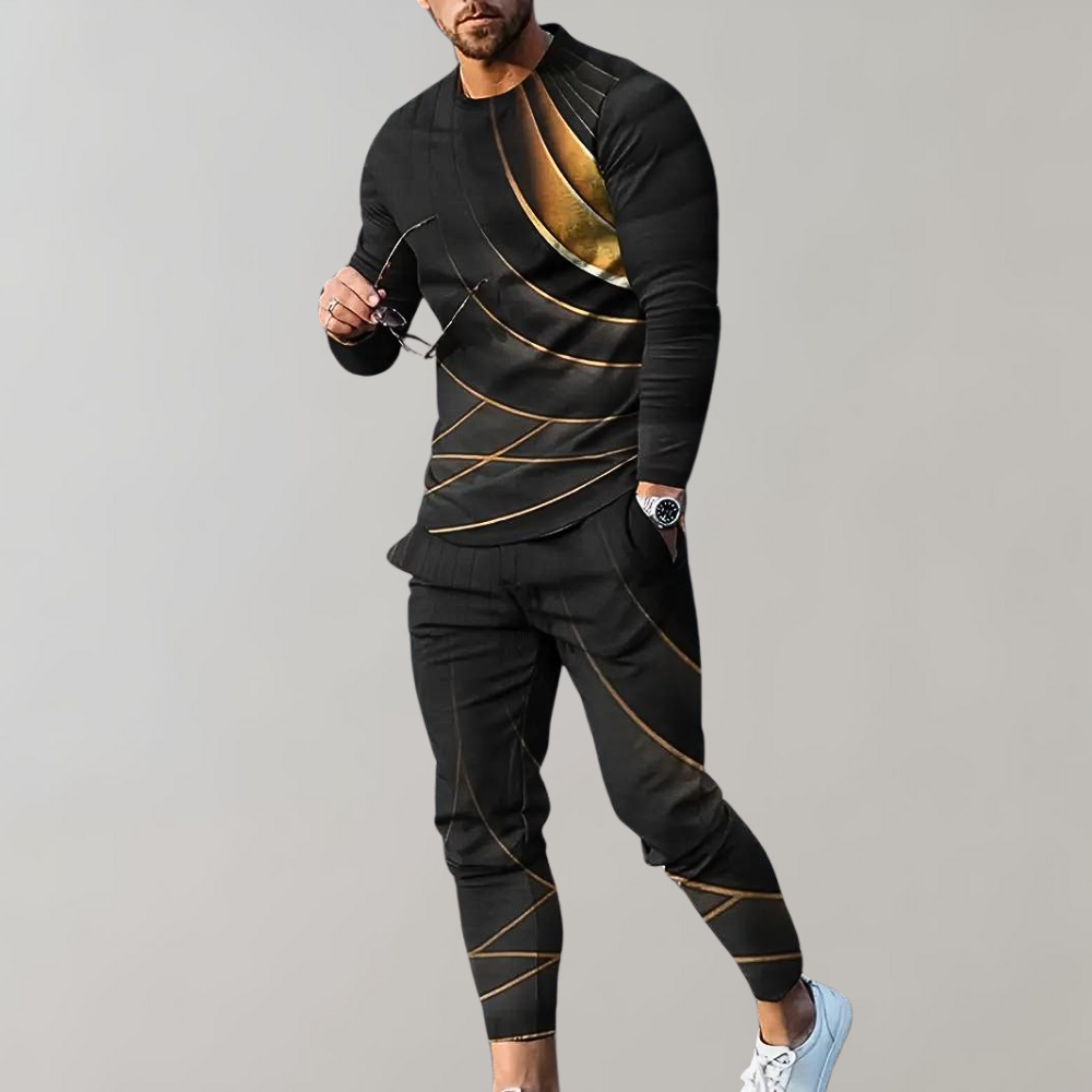 Heren Trainingspak met Gouden Swirl Print | Set van Trui en Jogger | Streetwear Luxe