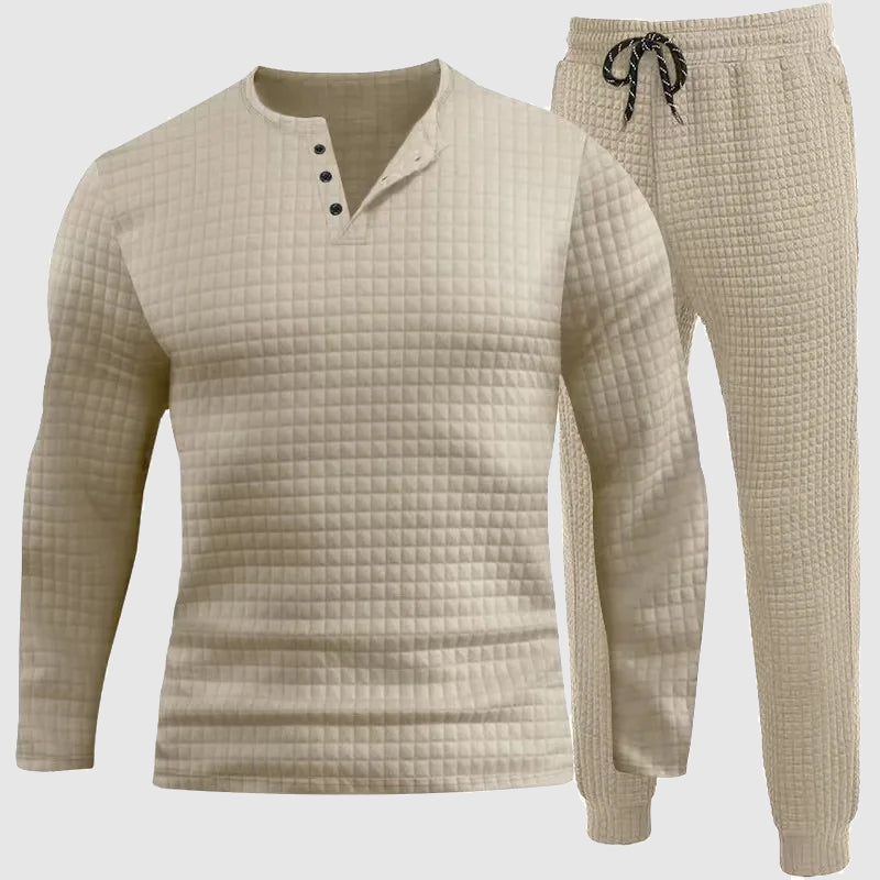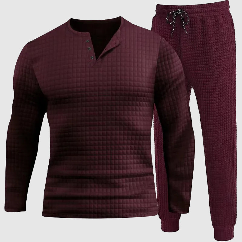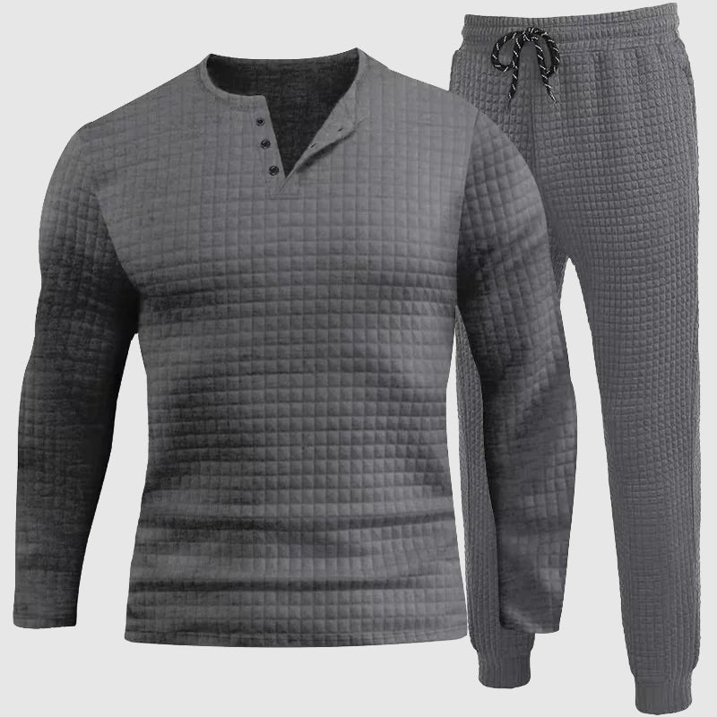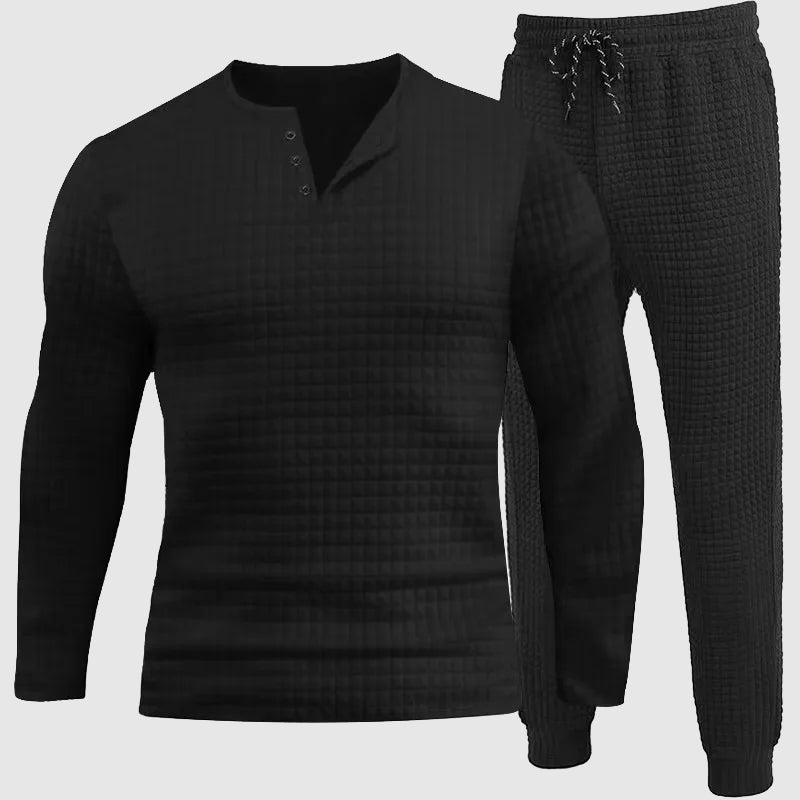 Heren Waffle Loungewear Set | Textuur Knit Top & Jogger | Slim Fit Comfortwear