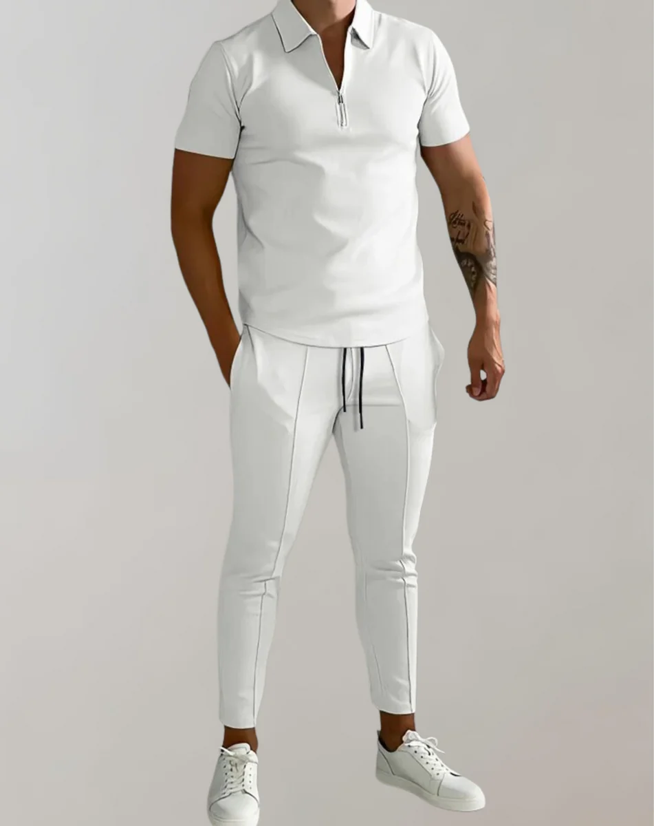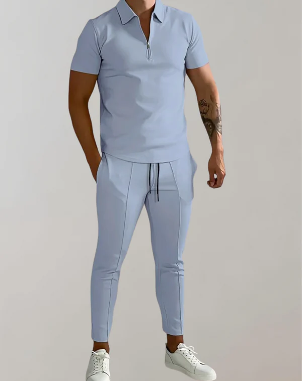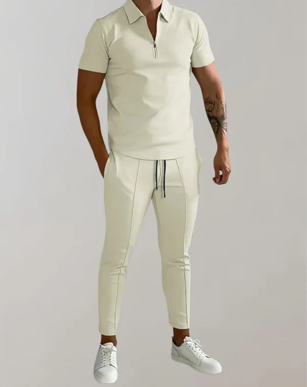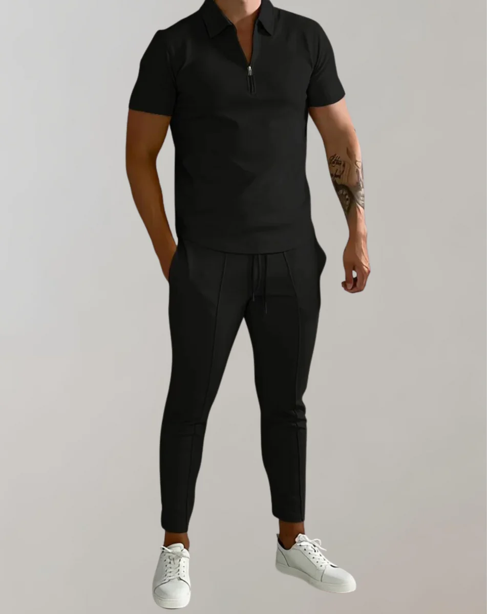 De Motion Fit Set is perfect voor wie houdt van een gestroomlijnde look met sportieve flair. Deze tweedelige set combineert een moderne polo met een slim fit jogger, beide gemaakt van rekbare, comfortabele stof. Ideaal voor actieve dagen, casual outings of een stijlvolle workout – waar comfort en stijl samenkomen.
