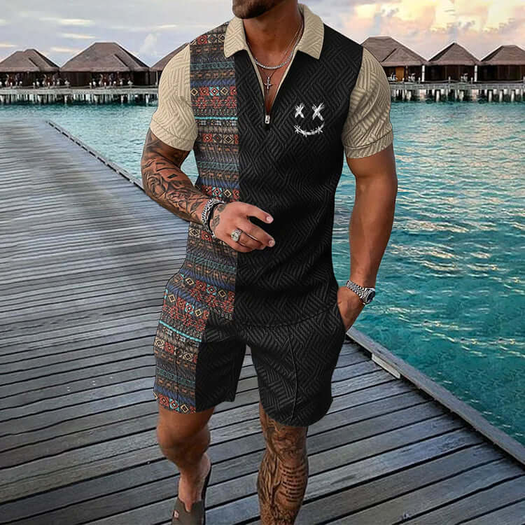 De Tribal Contrast Set is een expressieve en unieke tweedelige outfit met culturele flair. Deze set combineert een grafisch tribal-patroon met effen kleurvlakken voor een krachtig visueel contrast. De combinatie van een halve print en halve effen kleur zorgt voor een opvallende zomerset die comfort en creativiteit perfect samenbrengt.
