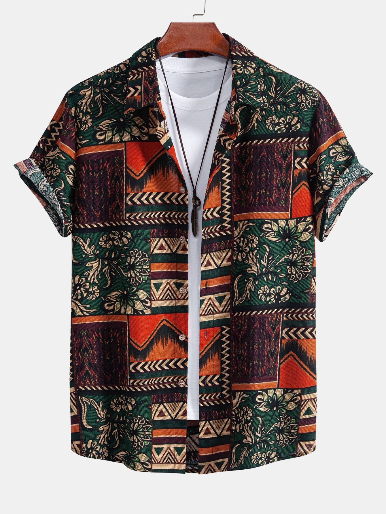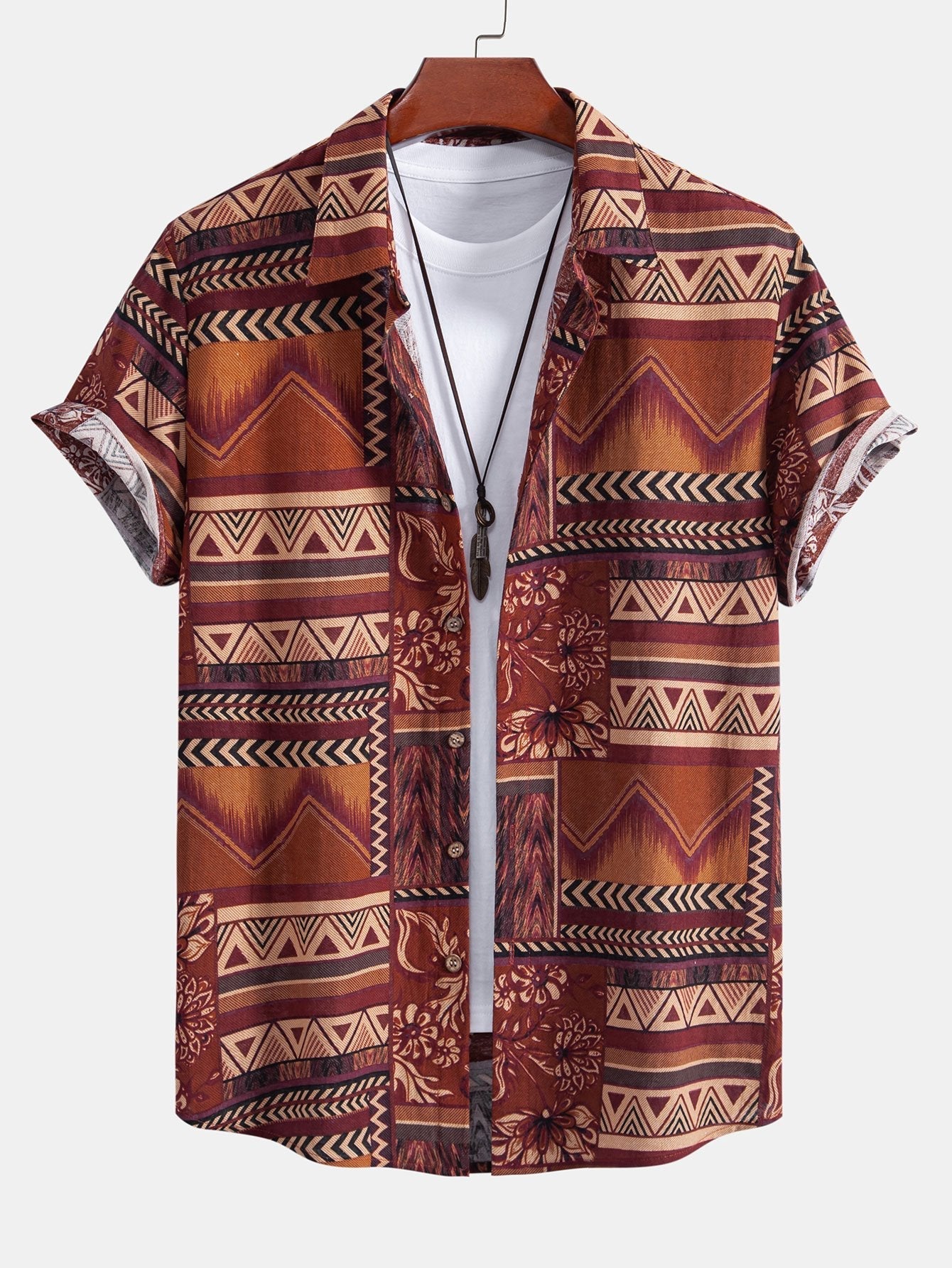 Nomad Shirt | Etnisch Patchwork | Warme Aardetinten