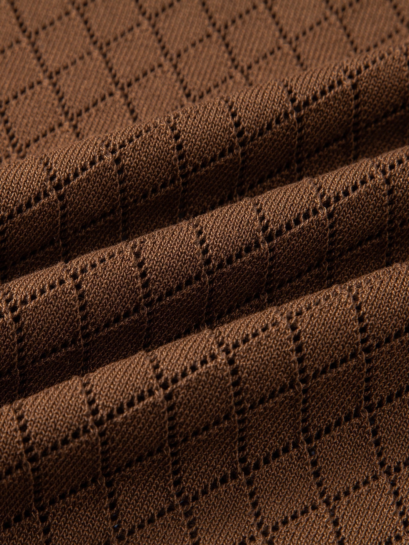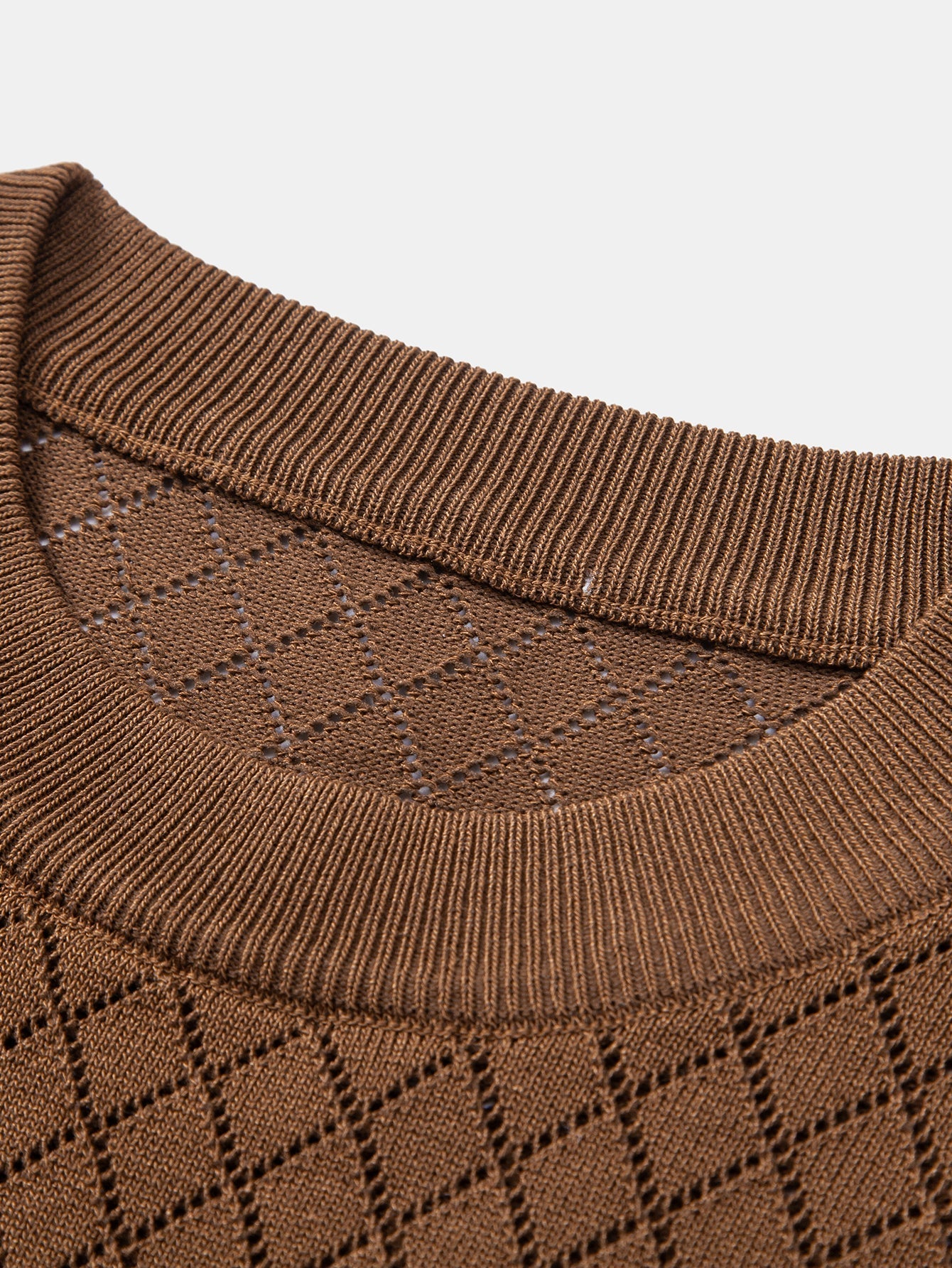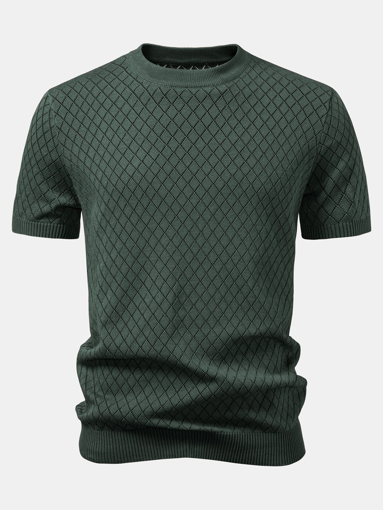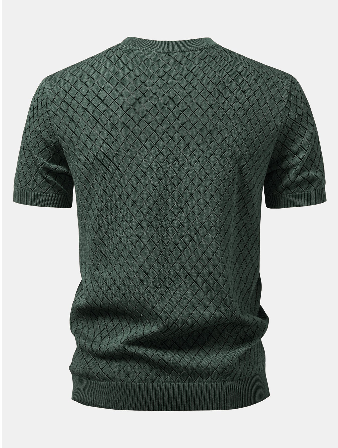 Het Diamond Texture Knit T-Shirt tilt je casual garderobe naar een hoger niveau met zijn elegante ruitstructuur. De gebreide stof voelt stevig en comfortabel aan, terwijl het verfijnde patroon een stijlvolle touch toevoegt. Ideaal voor wie houdt van subtiele luxe en een verzorgde uitstraling.