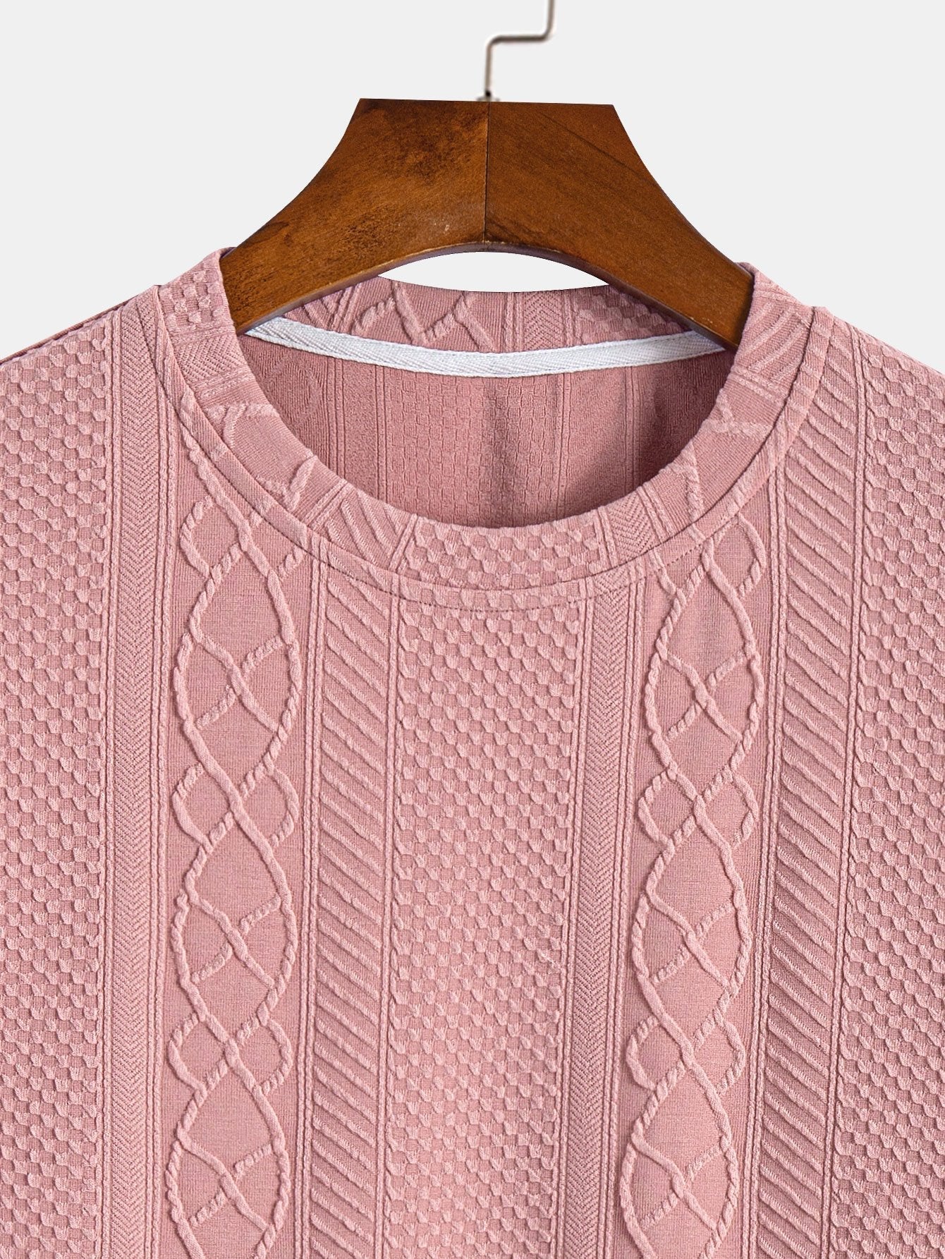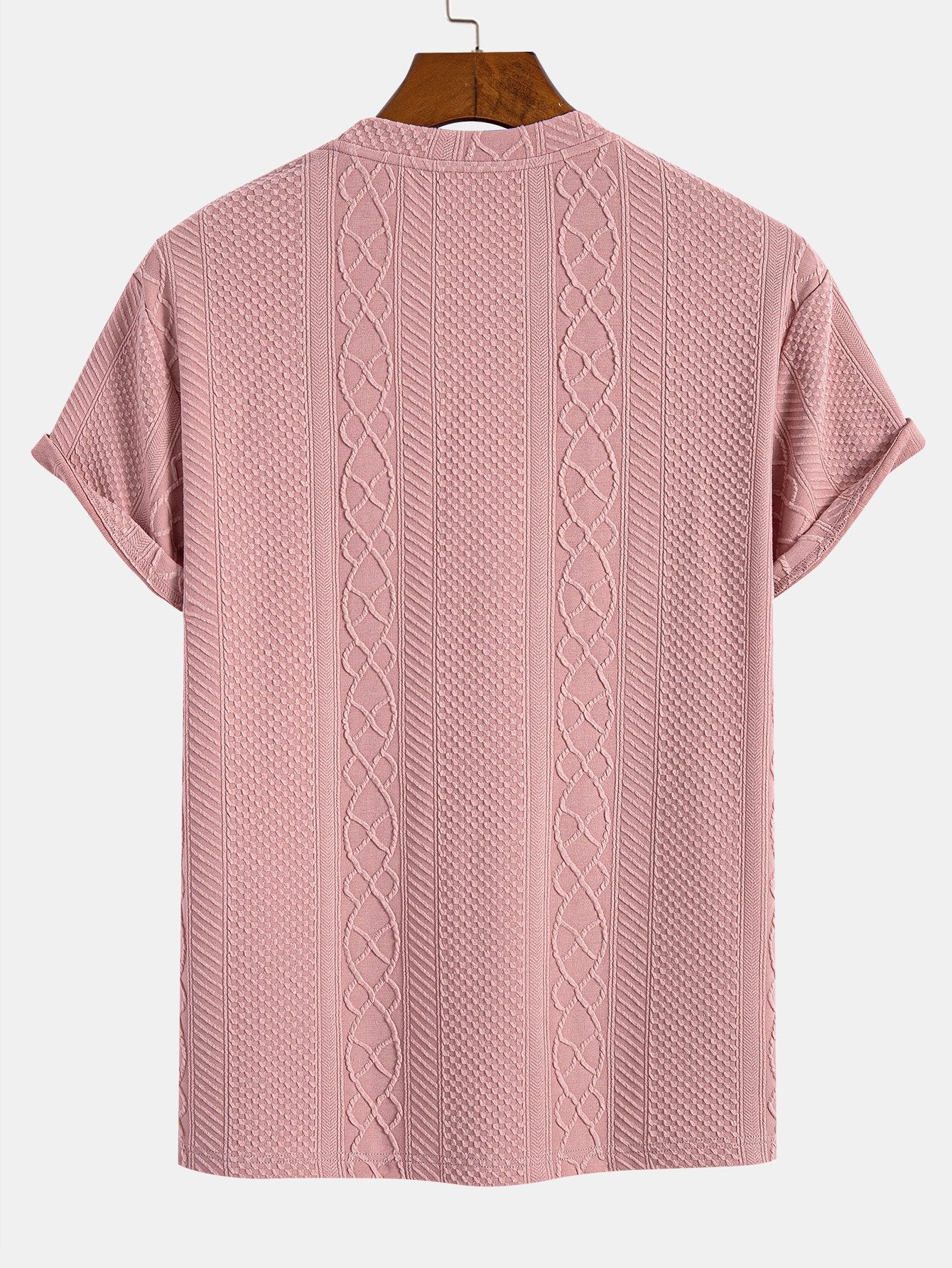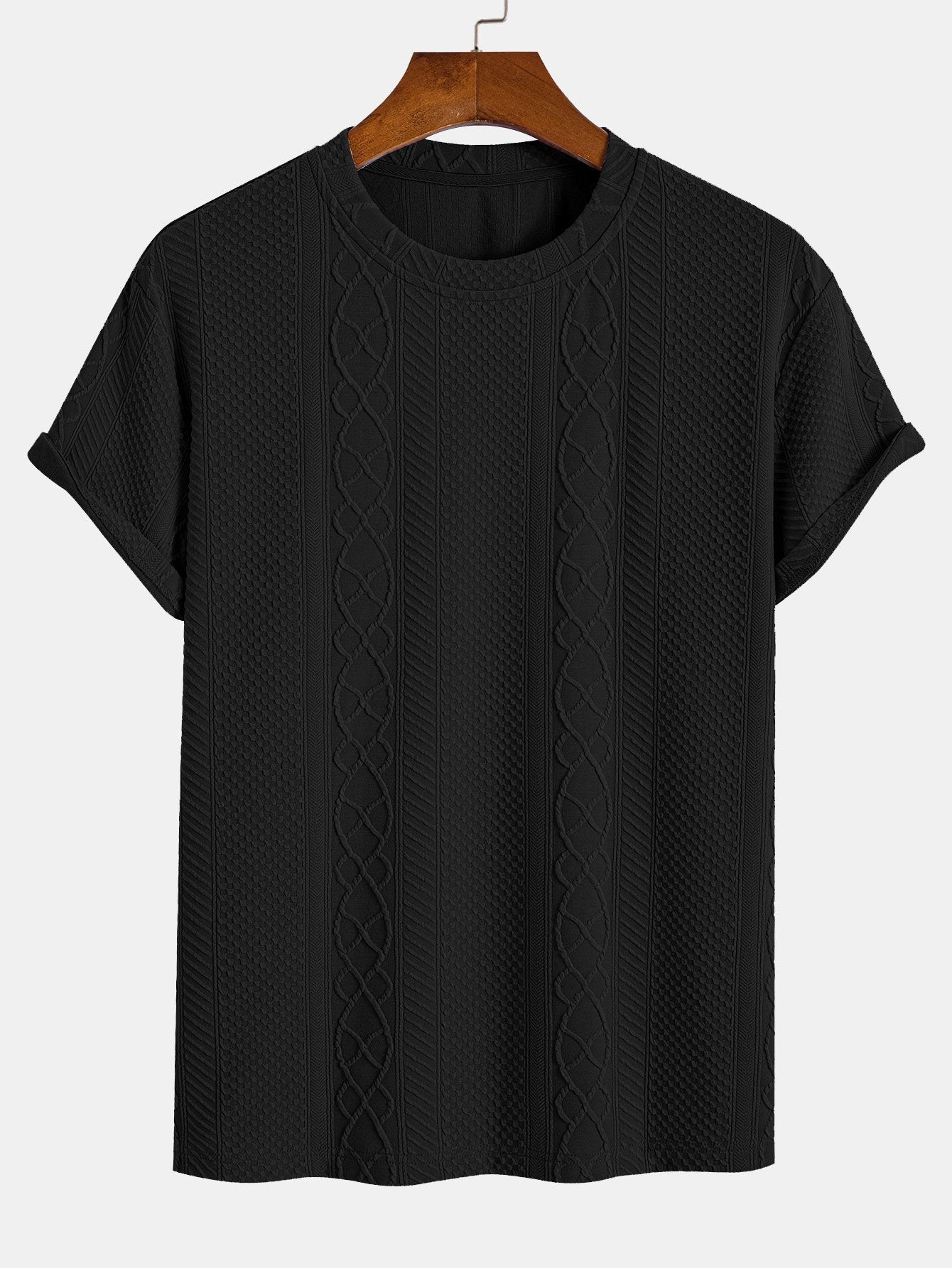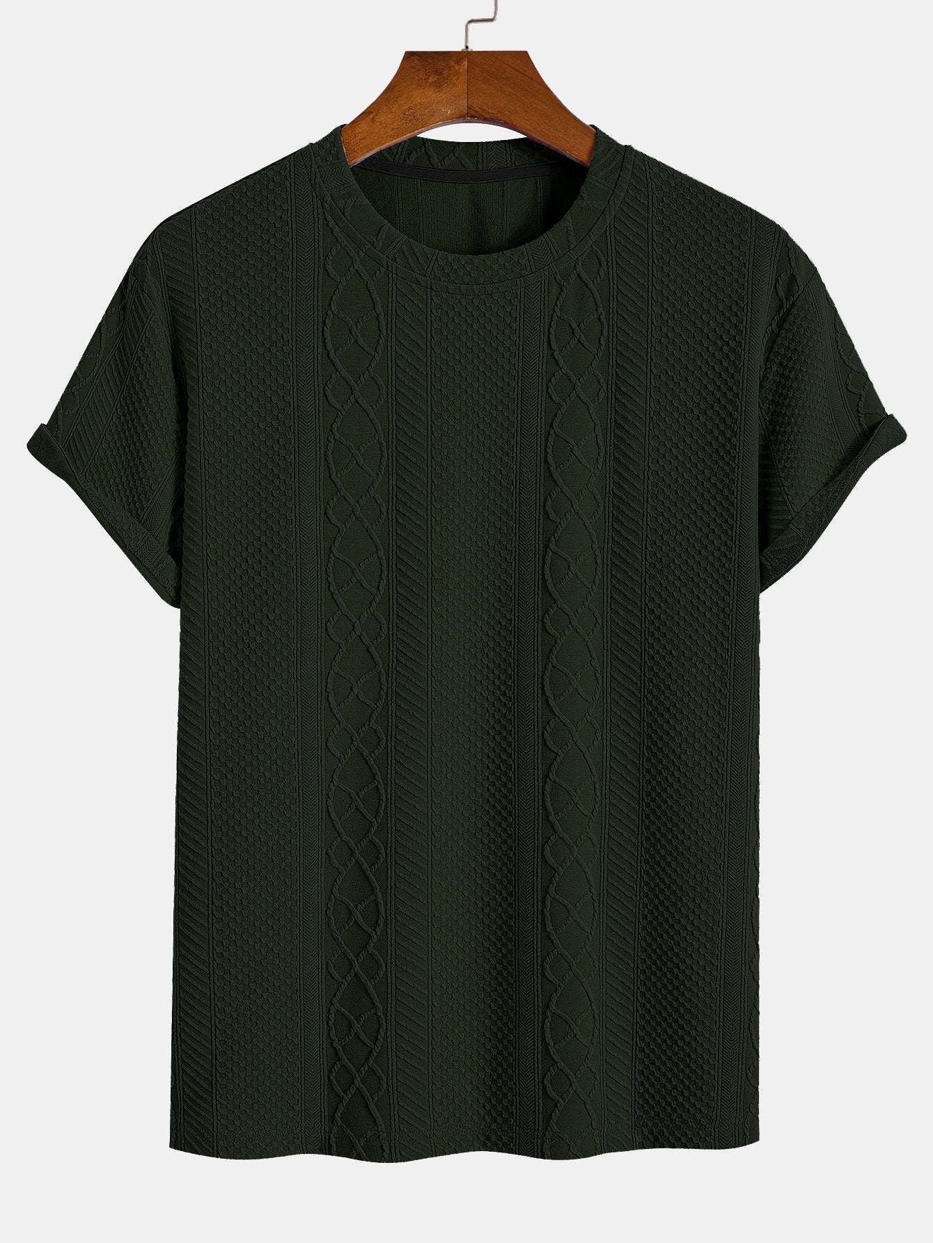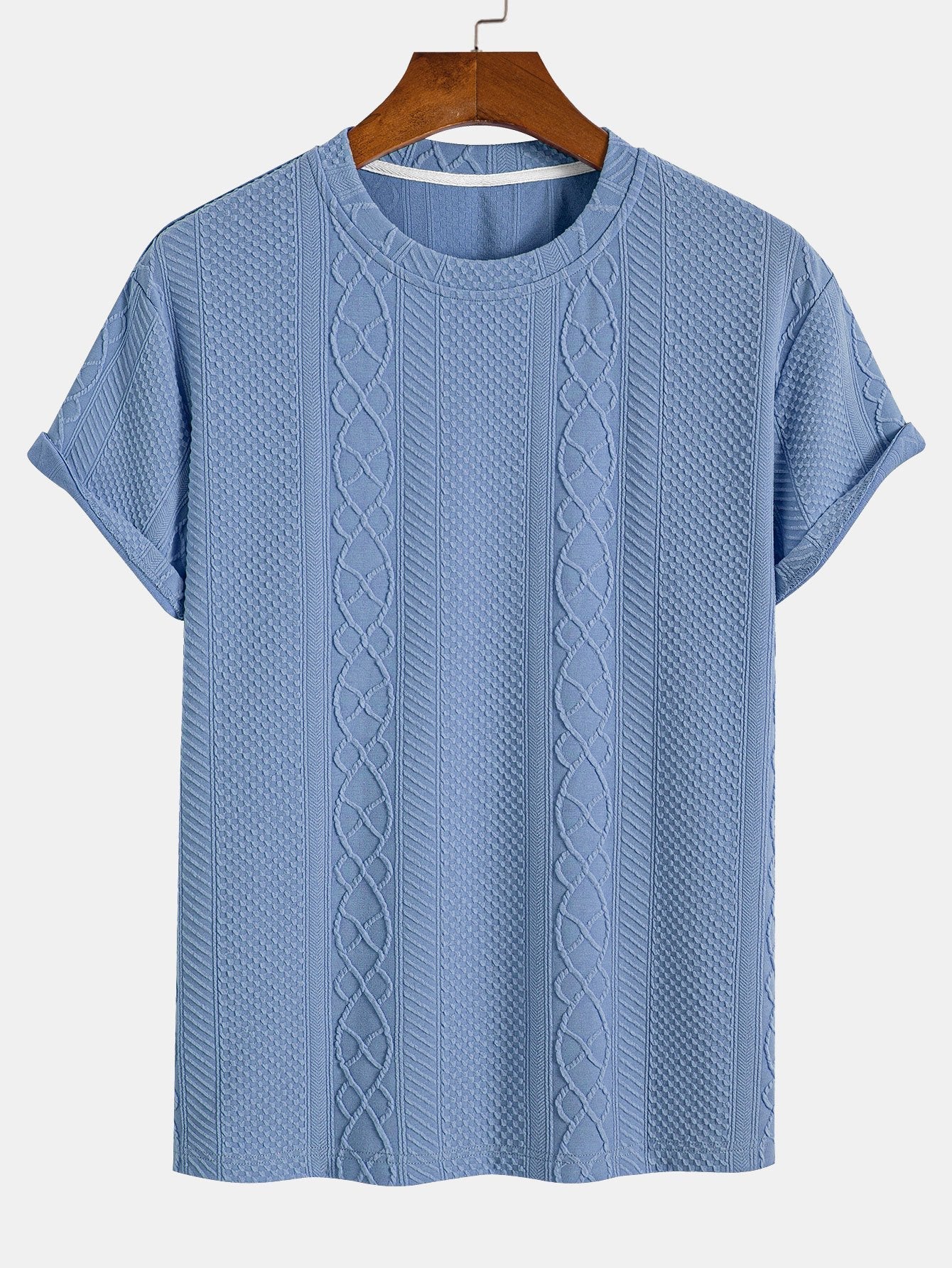 Het Knit Pattern T-Shirt combineert het comfort van een T-shirt met de verfijnde uitstraling van een gebreid patroon. De subtiele verticale kabelstructuur geeft het shirt een unieke textuur en een stijlvolle twist. Ideaal voor wie houdt van eenvoud met een elegant detail.