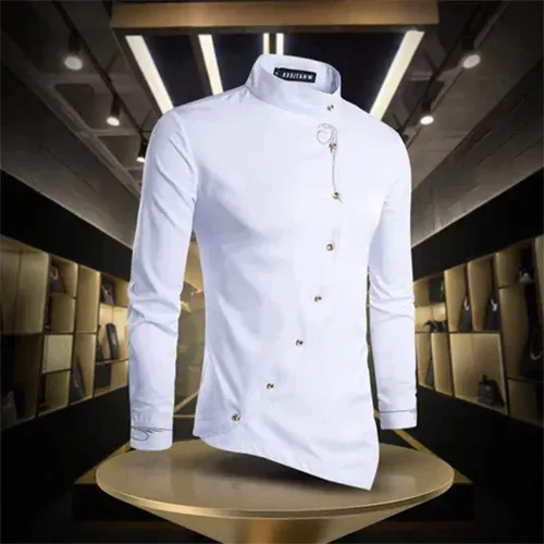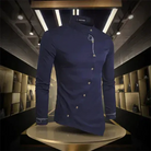 Het Prestige Shirt straalt moderne klasse uit met zijn slanke silhouet en subtiele details. De unieke kraag zonder omslag en het verfijnde knoopontwerp geven dit overhemd een stijlvolle, high-end uitstraling. Perfect voor mannen die houden van een geraffineerde look zonder overdaad.