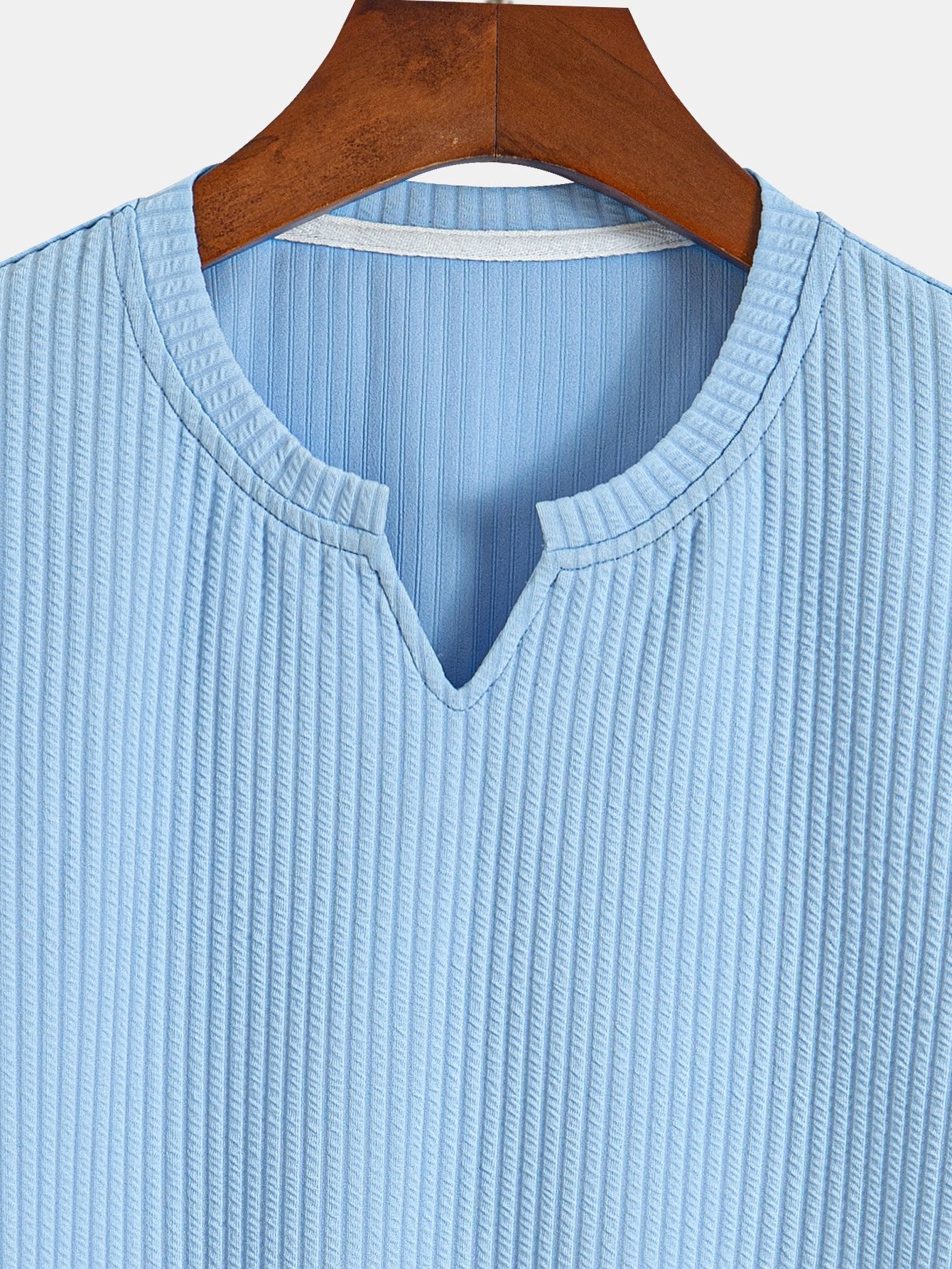 Relaxed V-Notch T-Shirt | Geribde Structuur | Luchtige Elegantie