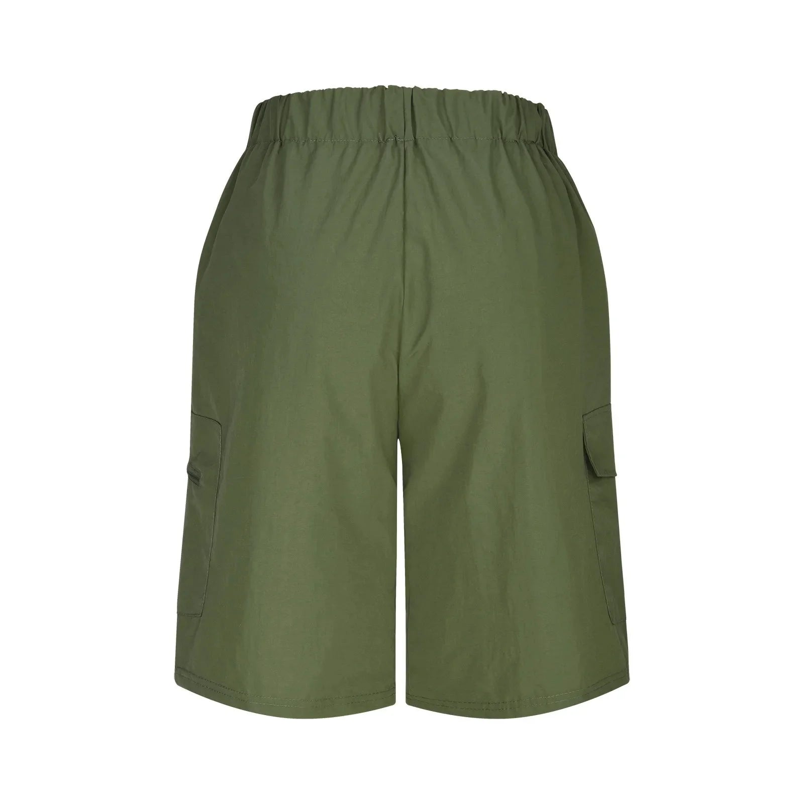 Details: Meerdere ritszakken en elastische tailleband met trekkoord