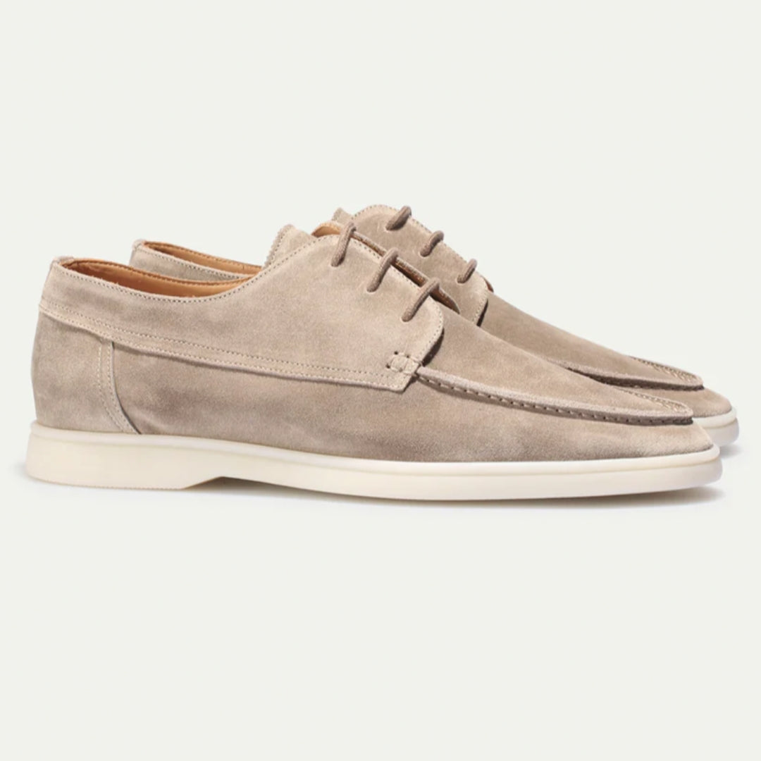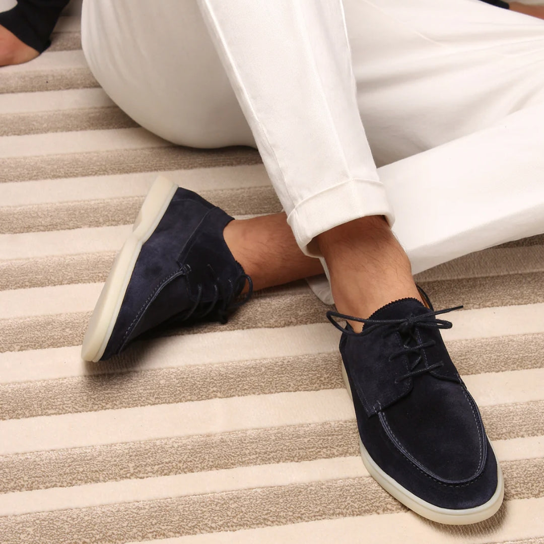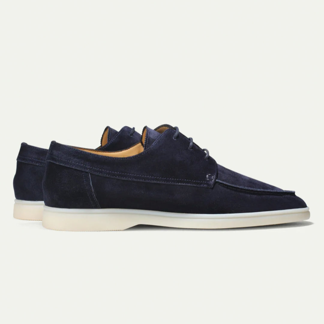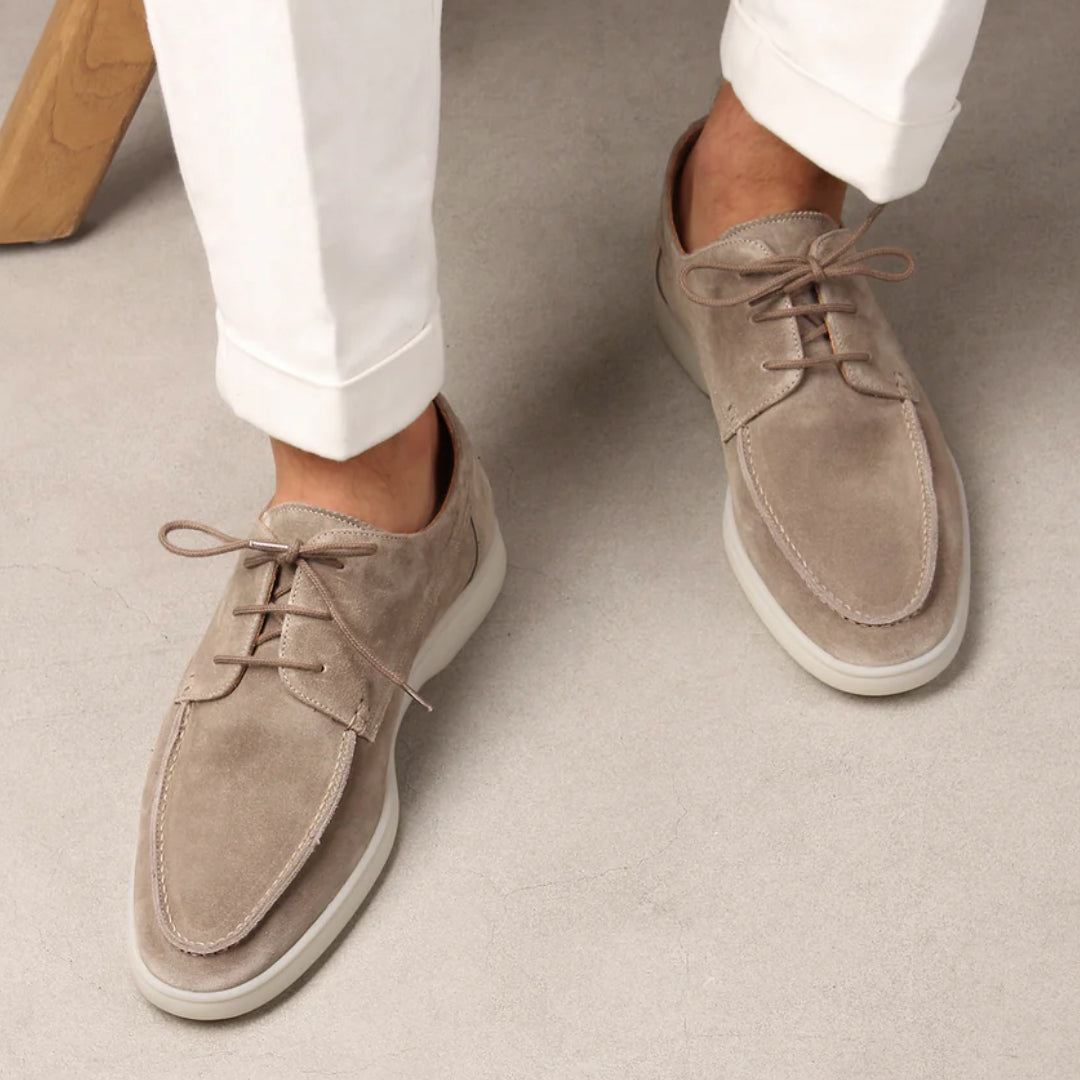 Deze suède-look casual schoenen combineren luxe en comfort in één design. De zachte stof en subtiele vetersluiting zorgen voor een verfijnde uitstraling, terwijl de flexibele zool optimaal draagcomfort biedt. Perfect voor zowel casual als smart-casual outfits.