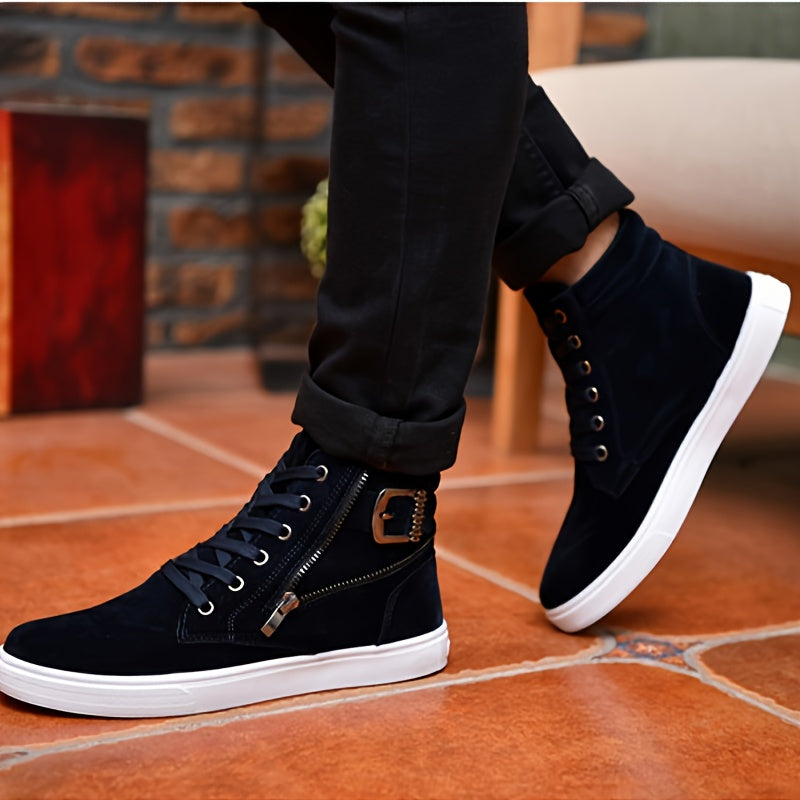 Deze stijlvolle high-top sneakers combineren mode en comfort met een stevige zool en een suède-look afwerking. De vetersluiting met metalen details en de zijgesp geven een unieke uitstraling, terwijl de zachte binnenvoering zorgt voor langdurig draagcomfort. Ideaal voor dagelijks gebruik en streetwear outfits.