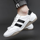 Deze heren sneakers met retrostrepen combineren een klassieke sportstijl met hedendaags comfort. Gemaakt van hoogwaardig kunstleer met een stevige rubberen zool, zijn deze schoenen perfect voor dagelijks gebruik. De opvallende zijstrepen geven een dynamische touch, terwijl de vetersluiting zorgt voor een stevige pasvorm.