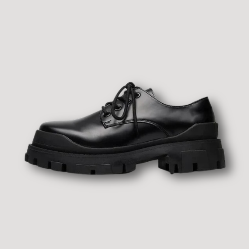 Deze schoen heeft een stevige constructie en een opvallende dikke zool voor extra stabiliteit. Dankzij de vetersluiting kunt u de schoen op maat maken, terwijl het bovenmateriaal duurzaamheid en bescherming biedt. De schoen is geschikt voor dagelijks gebruik en is een praktische en toch stijlvolle optie.