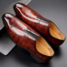 Deze luxe herenschoenen met krokodillenprint tillen je formele outfit moeiteloos naar een hoger niveau. Gemaakt van glanzend kunstleer met een elegante afwerking en slanke leest, zijn ze de perfecte keuze voor zakelijke meetings, bruiloften of stijlvolle avonden uit.