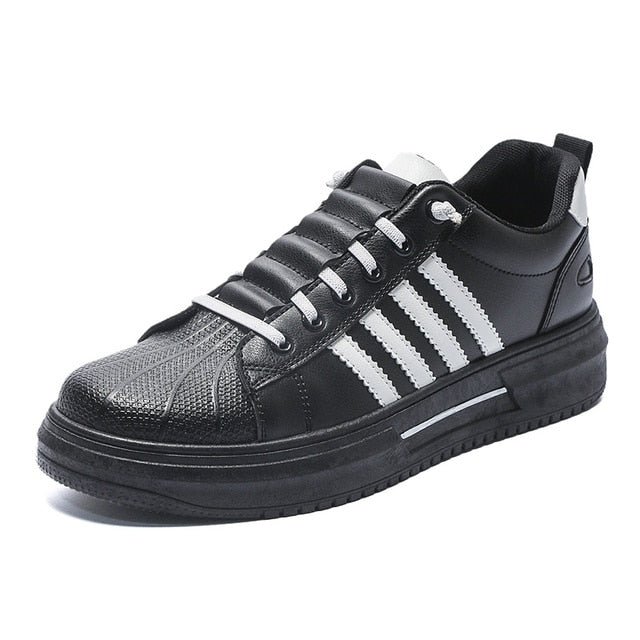 Heren Sneakers Zonder Veters | Minimalistisch Design | Zwart-Wit Contrastschoen