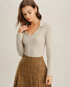Collared Knit Top | Fijngebreid & Uitlopende Mouwen | Zandbeige