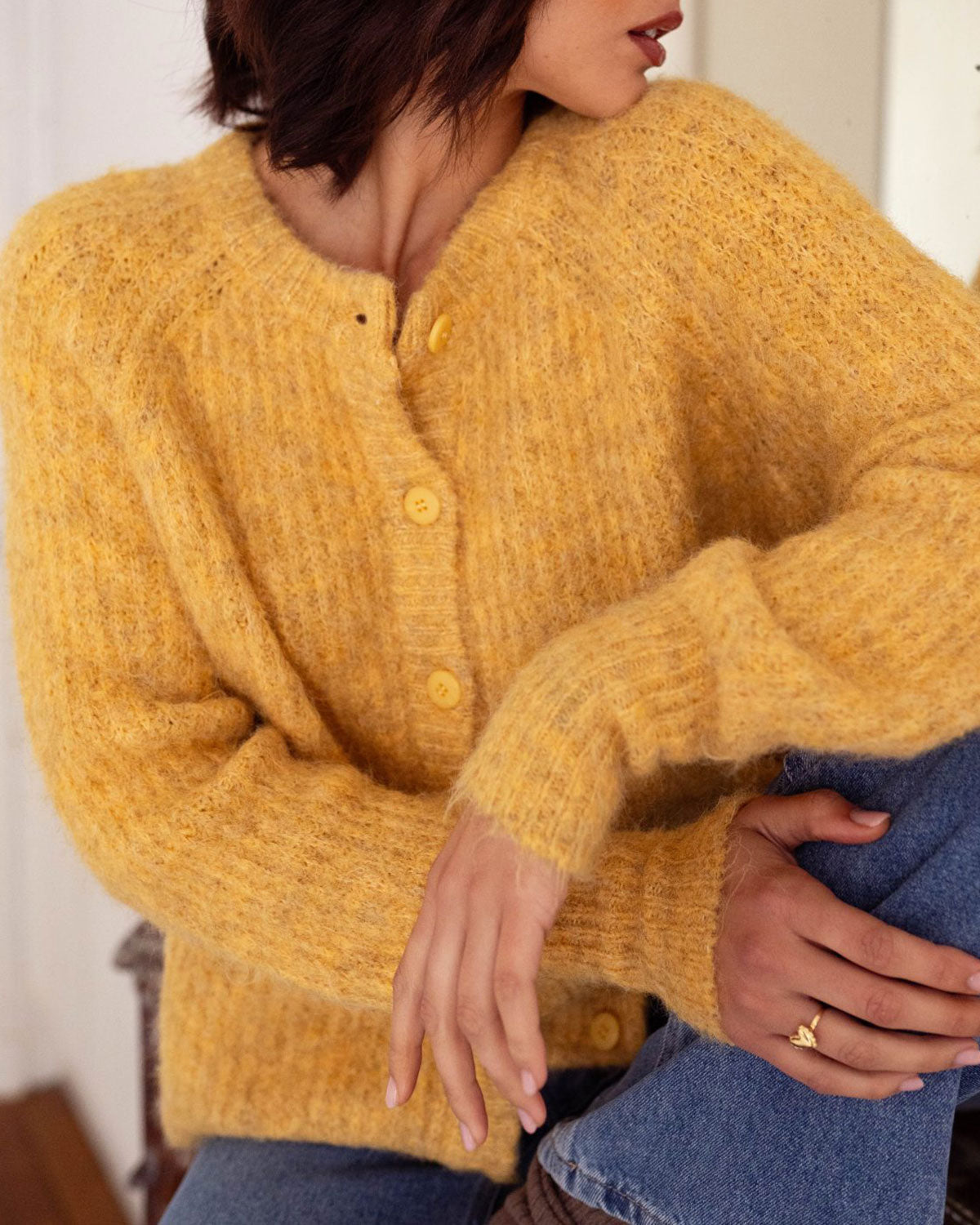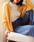 Het Cosy Knit Vest is jouw ultieme go-to voor knusse dagen met een vleugje kleur. Deze heerlijk zachte cardigan in een warme zonnegele melange brengt direct warmte en vrolijkheid in je outfit. Met een losse pasvorm en grove knitstructuur is dit vest ideaal voor gelaagde looks, thuis of onderweg. Een veelzijdig kledingstuk dat stijl en comfort moeiteloos combineert.