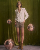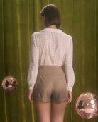 Combineer de Élise Lace Blouse met een high-waisted rok of pantalon voor een sophisticated uitstraling. Voor een moderne twist draag je hem met een geruite short of jeans. Voeg subtiele gouden sieraden toe om de romantische details extra te benadrukken.