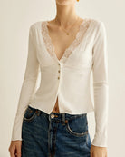 Élise Lace Top | Fijne Kanten Halslijn | Romantisch Knopenvest