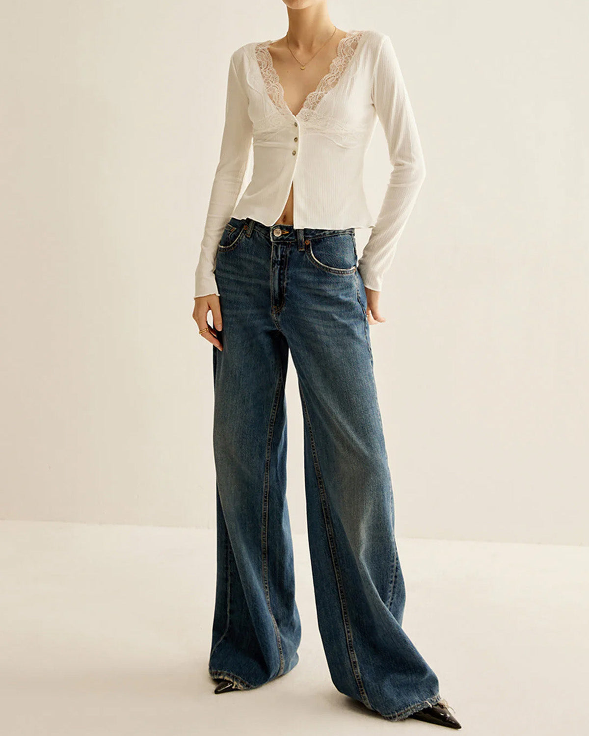 De Élise Lace Top is een elegant en vrouwelijk topje dat verfijning uitstraalt in elk detail. De diepe V-halslijn is afgewerkt met delicate kant, wat een romantische en zachte uitstraling geeft. De licht getailleerde pasvorm en de subtiele knopenrij maken dit item perfect voor zowel casual als chique gelegenheden. Gemaakt van comfortabele stretchstof die mooi aansluit op het lichaam.