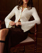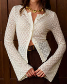 Fitted Pattern Top | Uitsnede Zoom & Flared Mouwen | Retro Elegantie