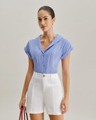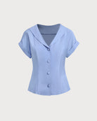 Lichtblauwe Korte Mouwen Blouse | Frisse Elegantie