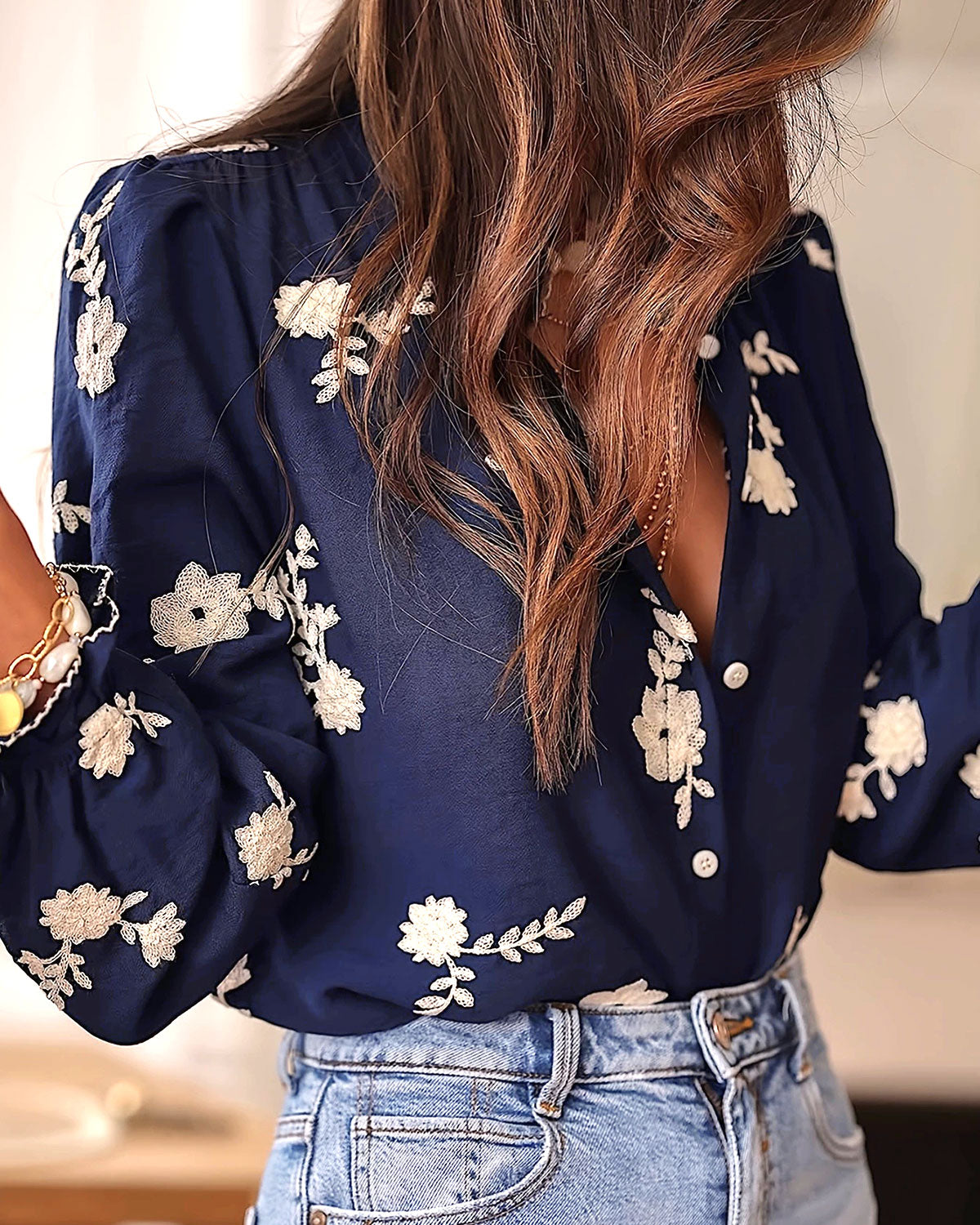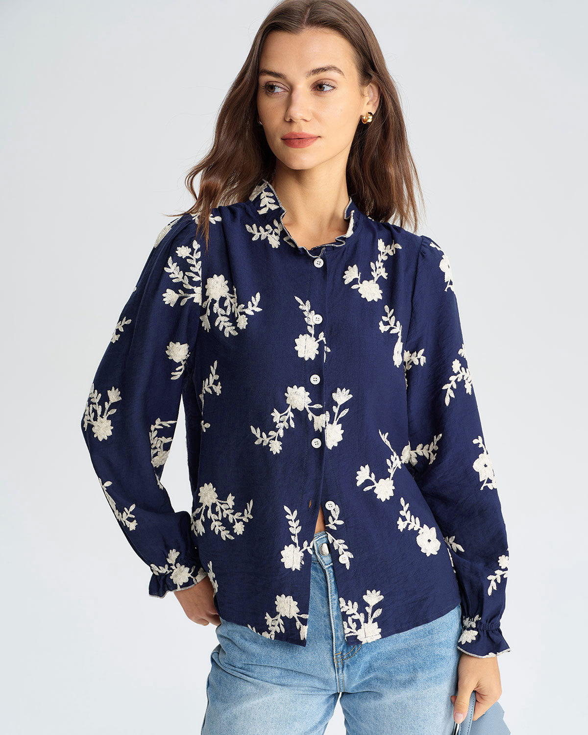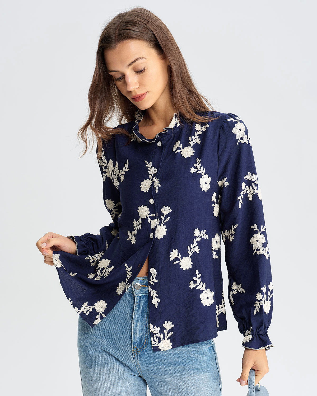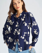 Midnight Bloom Blouse | Bloemenprint | Donkerblauwe Elegantie