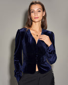 Midnight Velvet Blouse | Diepblauw Fluweel | Luxe & Verleidelijk