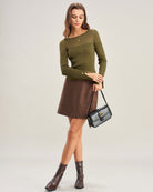 Combineer de Olive Button Knit met een midi-rok of een hoge pantalon voor een stijlvolle herfstlook. Voeg laarzen en een leren handtas toe voor een moeiteloze, elegante outfit — ideaal voor werk, diner of een dag in de stad.
