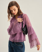 Ruffled Organza Blouse | Transparant & Speelse Mouwen | Lila Elegance