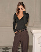 Satin Noir Top | Diepe V-Hals | Verfijnde Glans