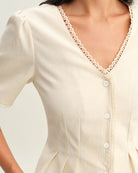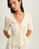 Satin Peplum Blouse | Knoopdetail & Strikaccent | Crème Elegance
